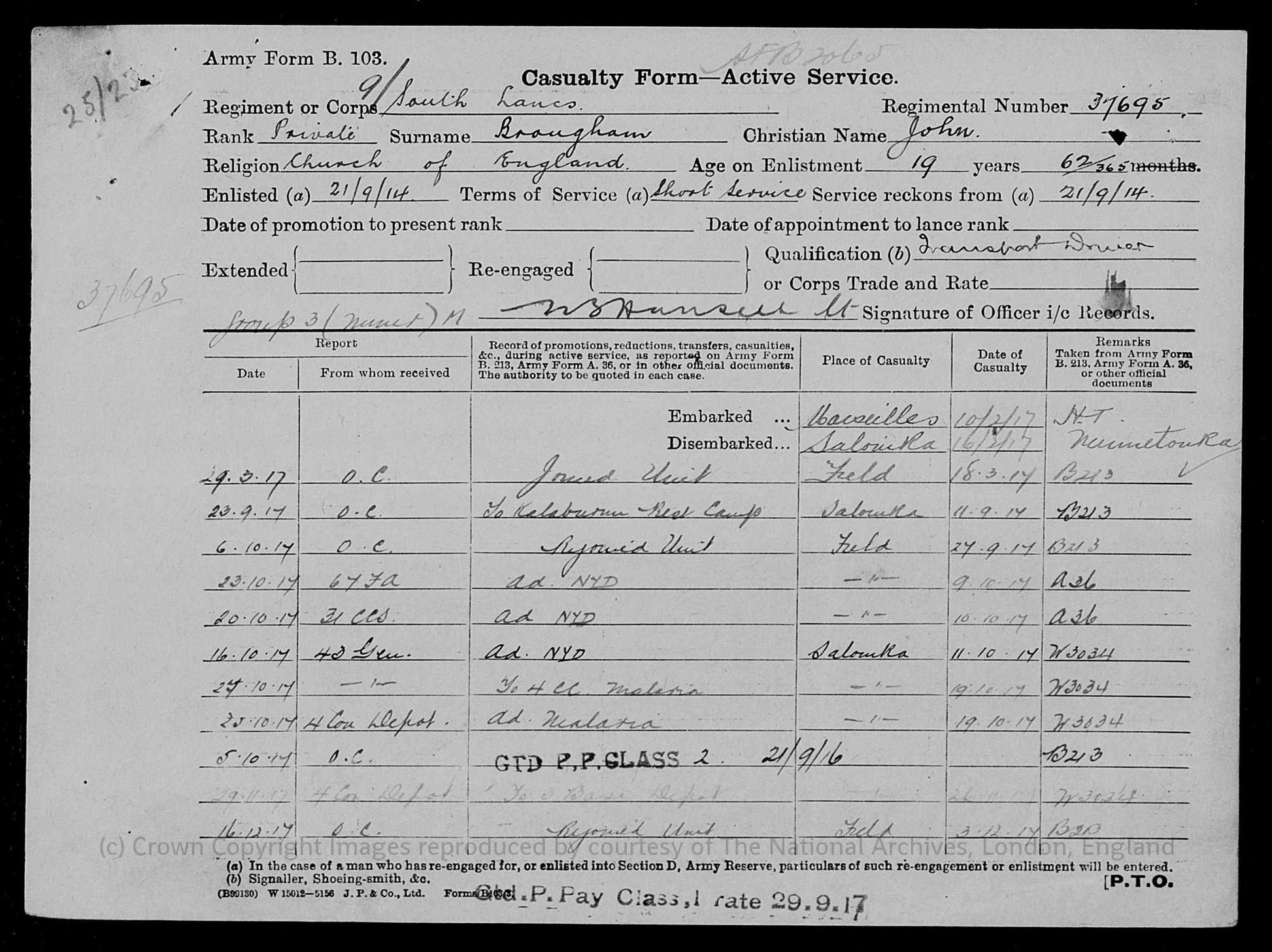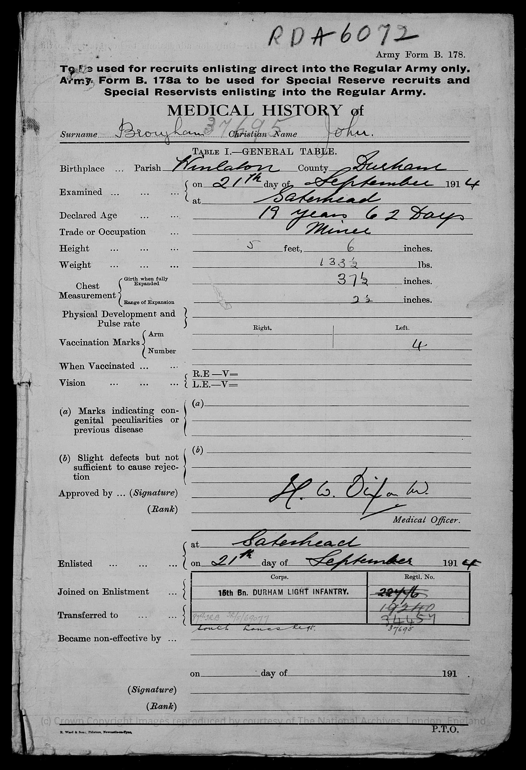 Born Winlaton, Durham. Lived Rowlands Gill. Enlisted Gateshead