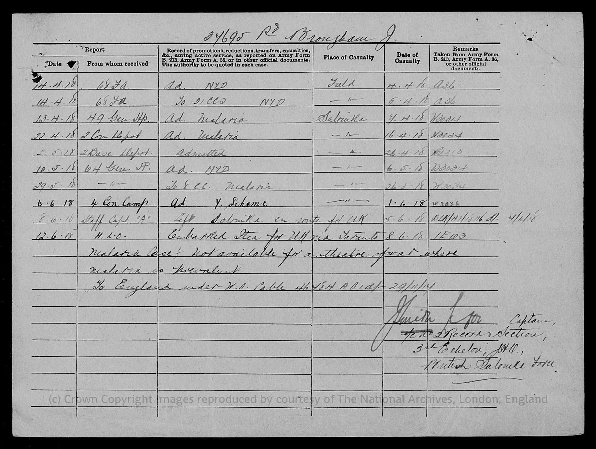 British War Medal - 22776 PTE. J. BROUGHAM. DURH. L. I.