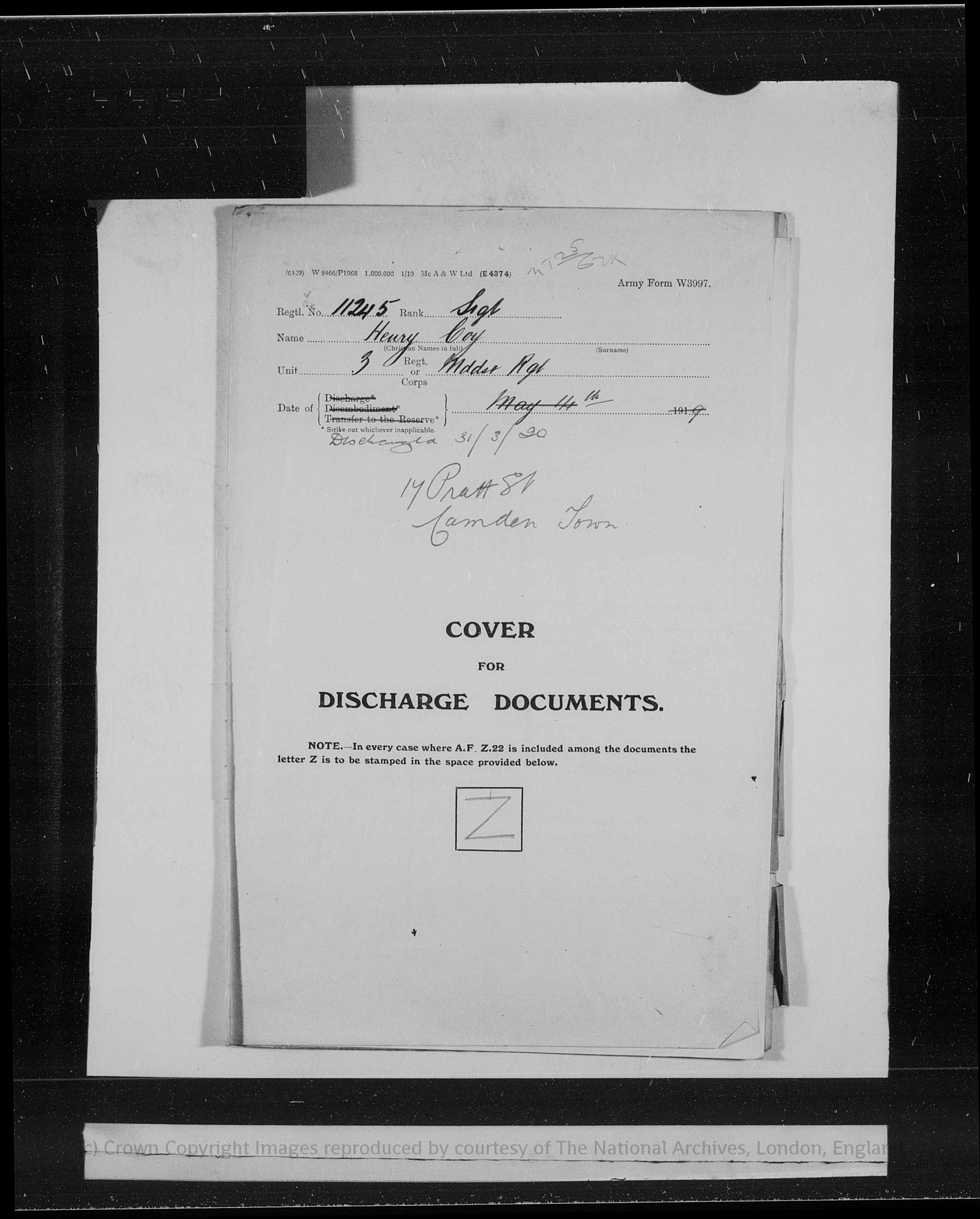 Henry Coy was born in January 1888 at Clerkenwell, Middlesex, and resided prior to the Great War at 17 Pratt Street, Camden Town, London. Details of his parents are not stated within the service material provided. He was a native of Middlesex and entered the Army as a young man, pursuing a long period of regular service before the outbreak of the First World War.