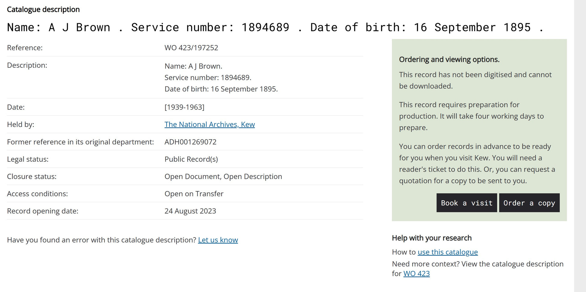 Arthur’s middle name was ‘John’, not ‘Frederick’ as stated on all the First World War records. The next of kin address and dates of awards line him up with “Arthur John Brown” mentioned throughout the war in local newspapers and it is worth noting again the ‘F’ on Military Medal has been scratched off. This clearly done by Arthur to remove the mistake but then he hasn’t bothered with the other medals.