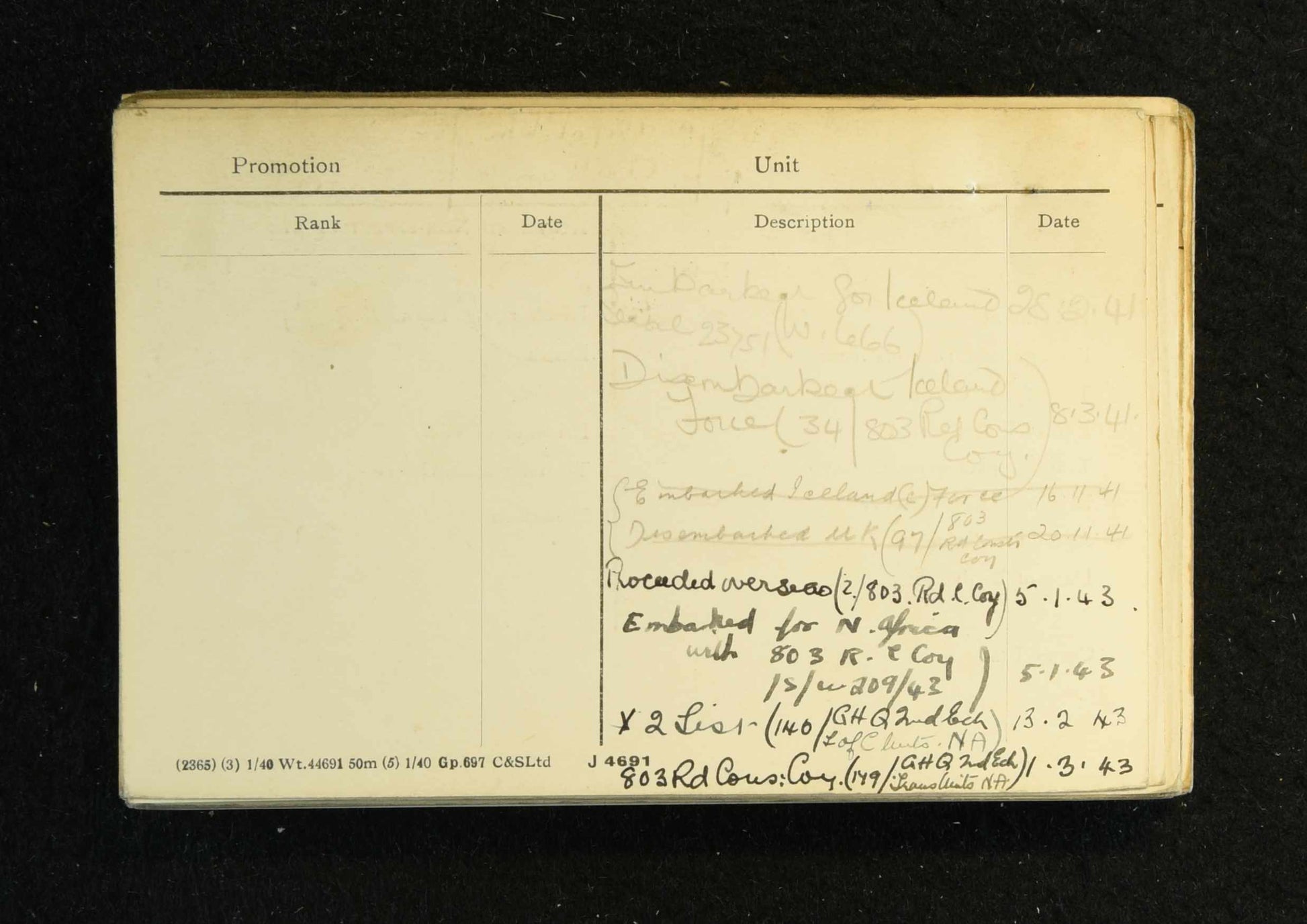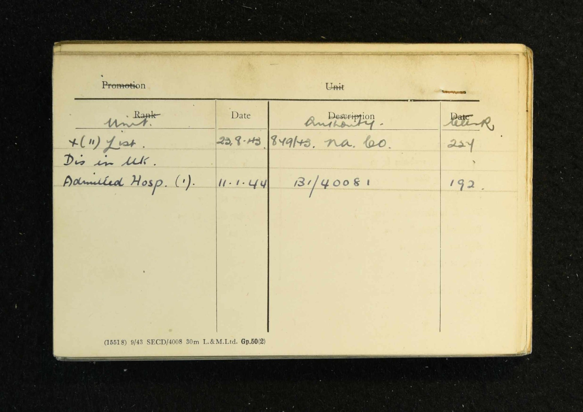 North Africa – January 1943 until his return to the UK in January 1944, where he was admitted to hospital on 11th January 1944.