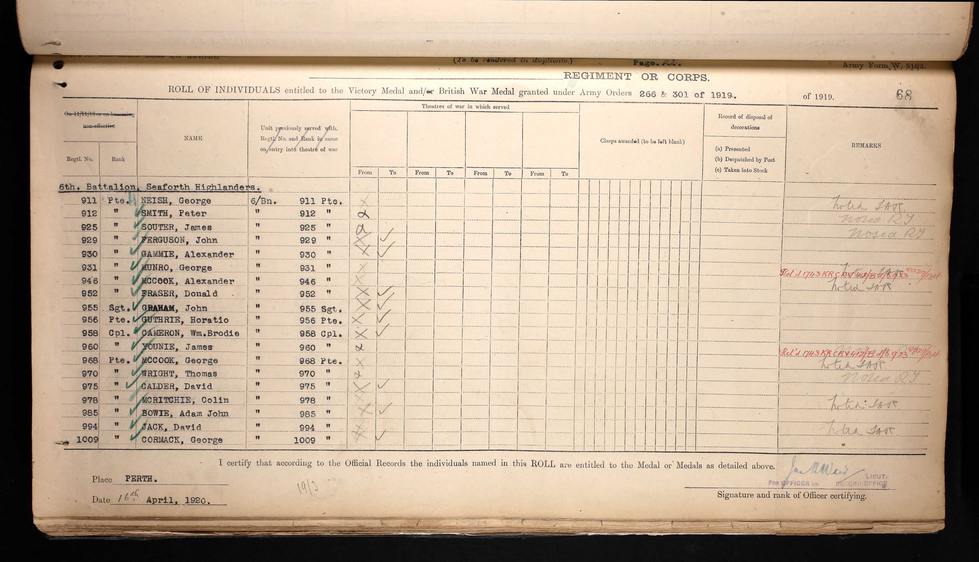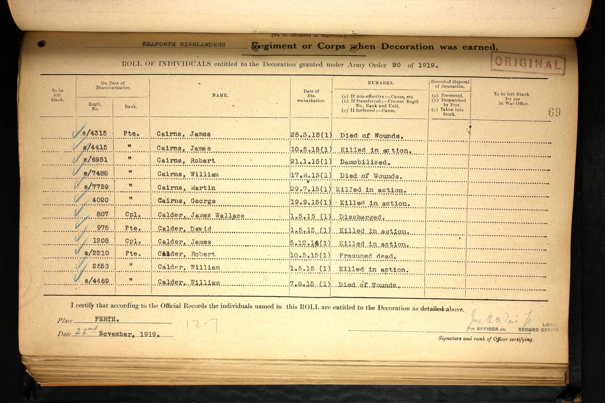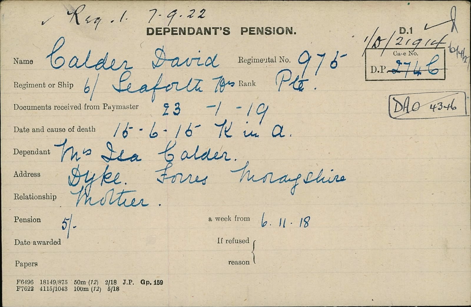 David Calder, 975 Private, 6th Seaforth Highlanders.