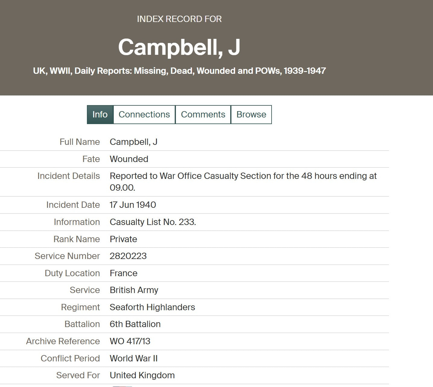 WW2 British Medal Group of 7 - Private John Campbell - 6th (Morayshire) Bn. Seaforth Highlanders T.A., Later 71st Anti-Tank Regiment Royal Artillery