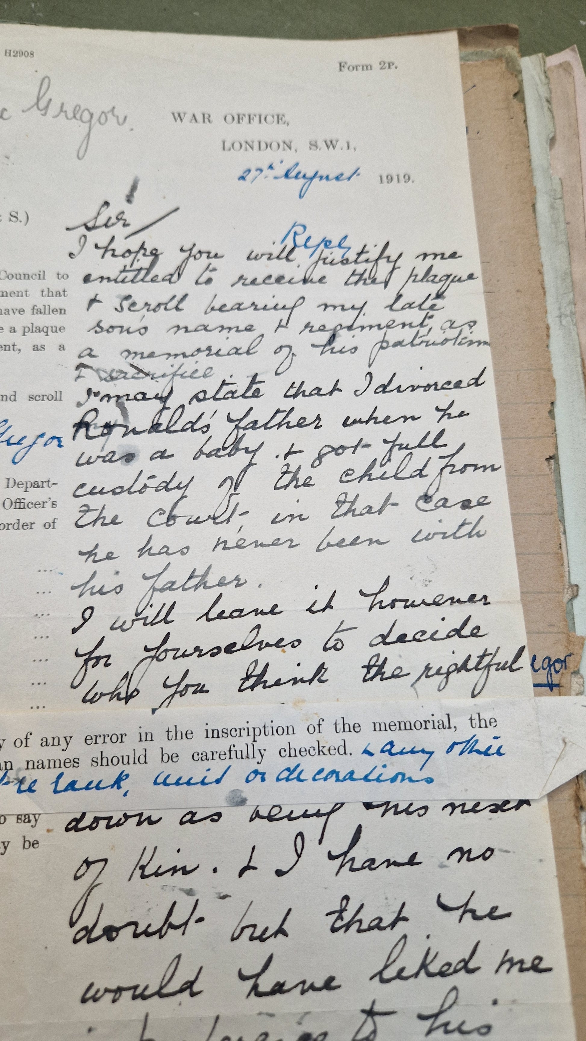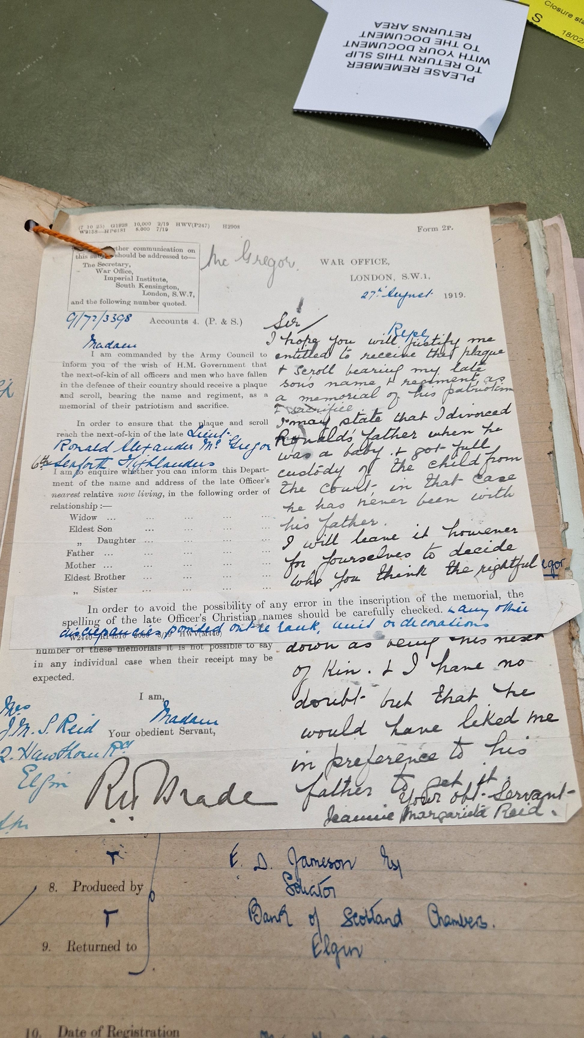 First World War Memorial Plaque - Lieutenant Ronald Alexander McGregor, 6th Bn. Seaforth Highlanders