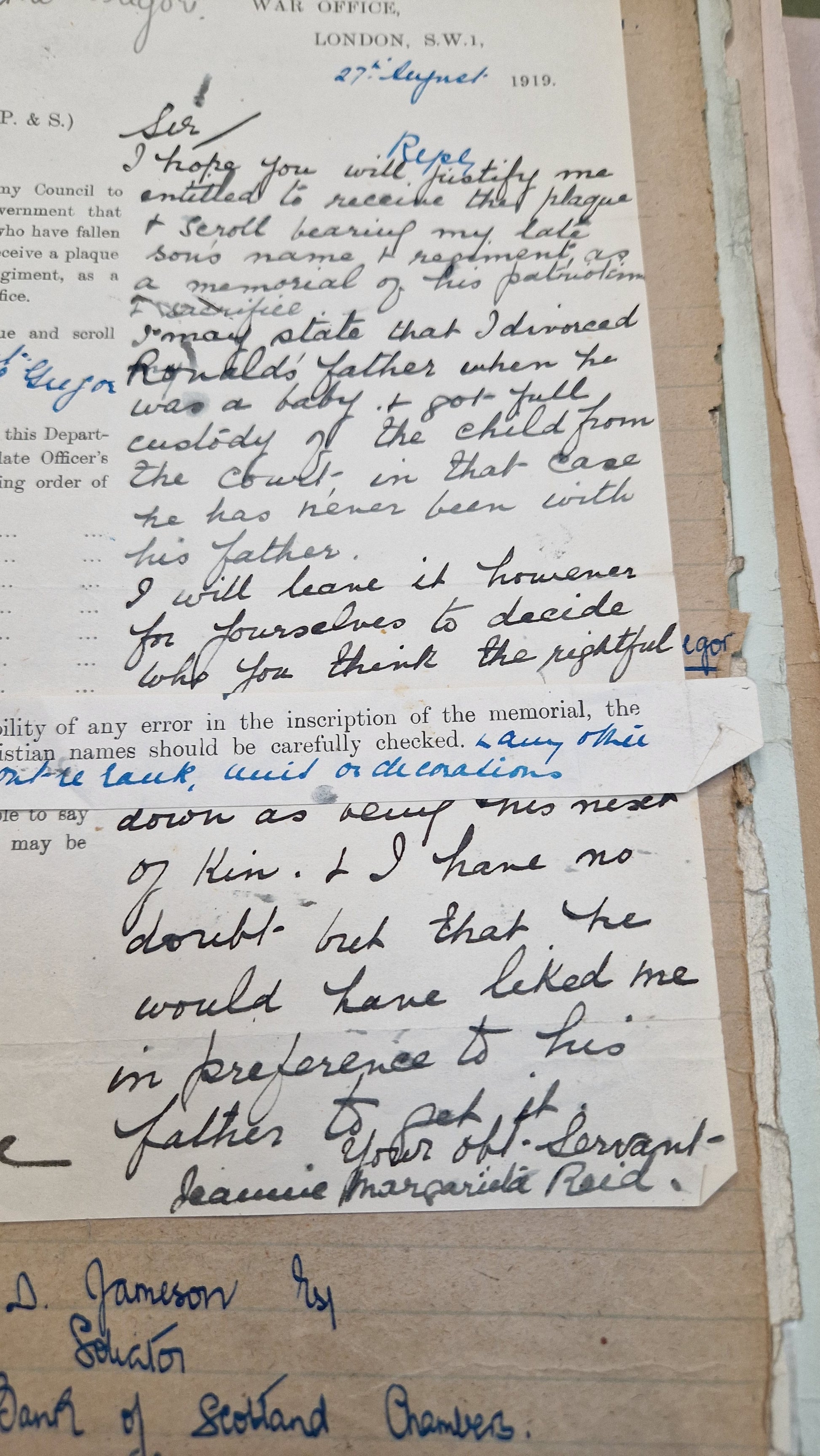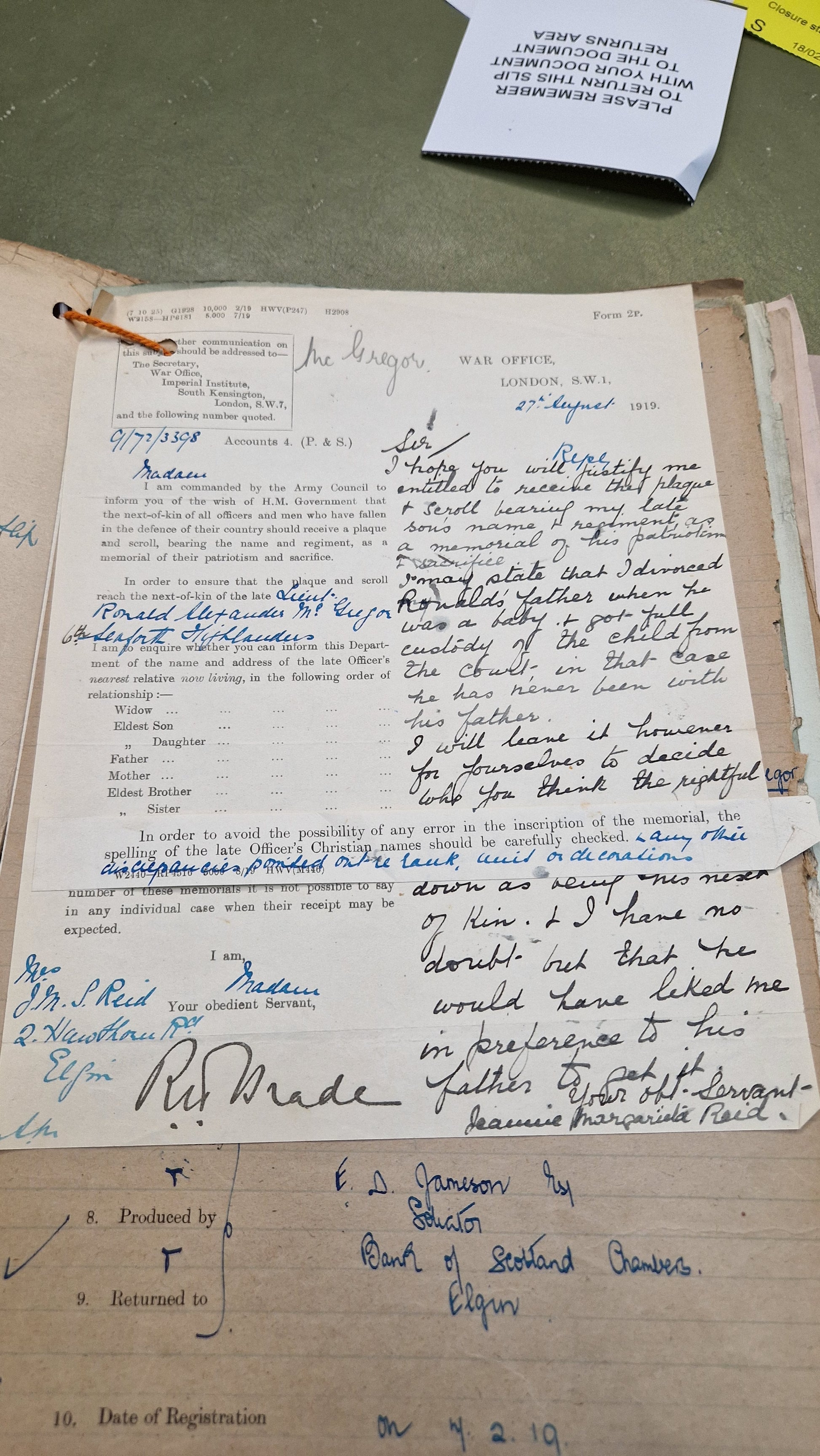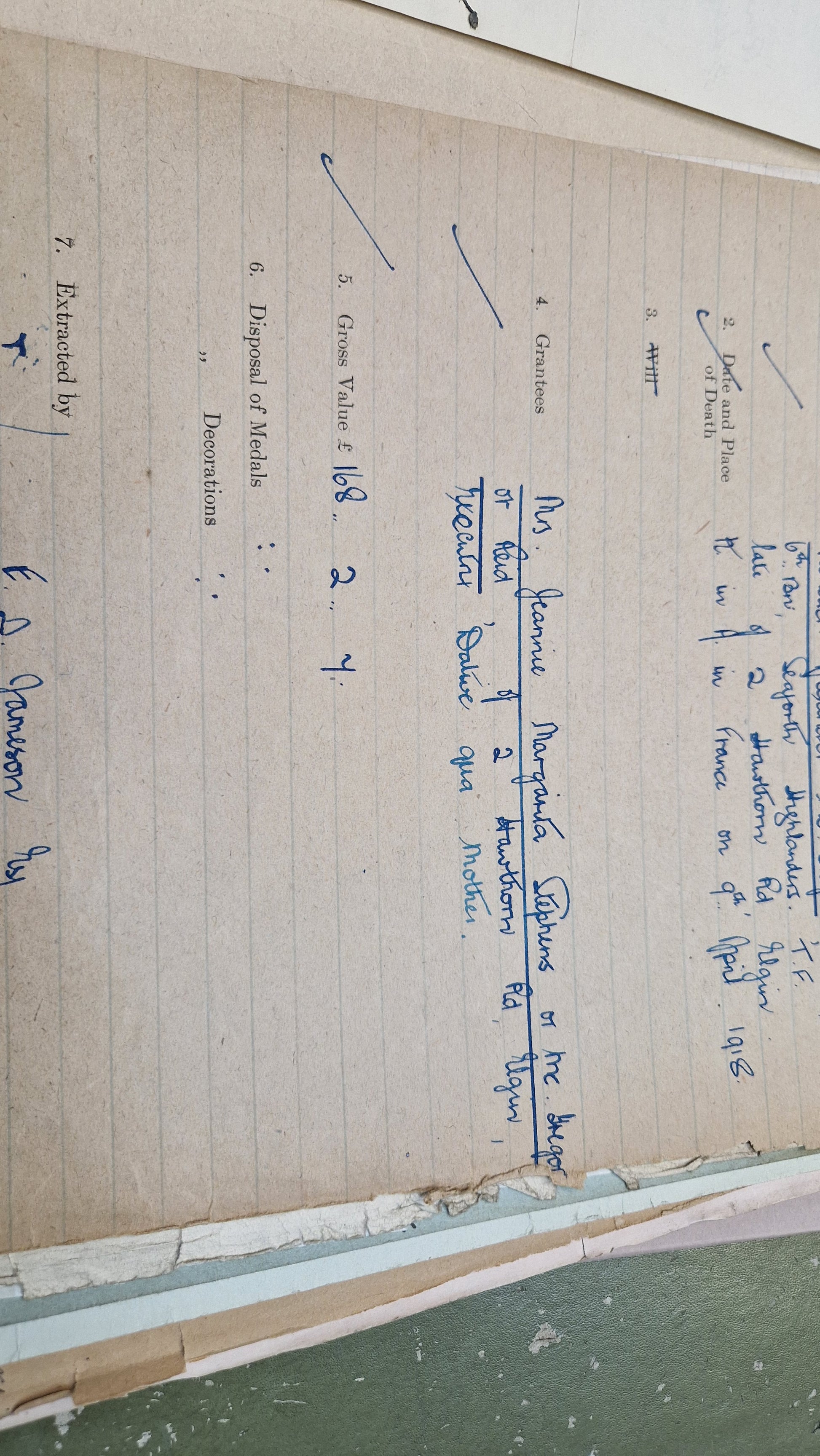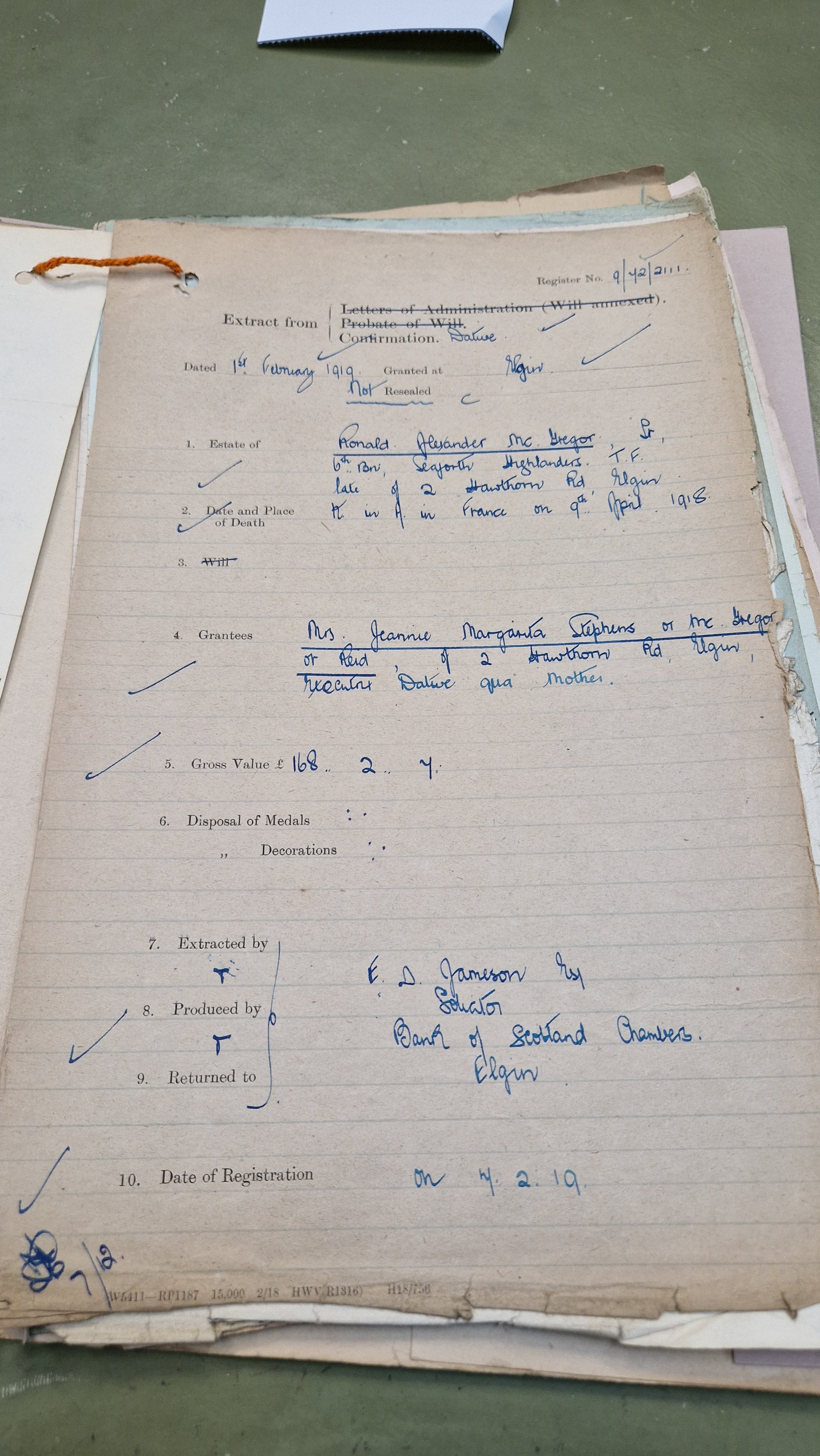 Worked for E. D. Jameson, Solicitor, Elgin