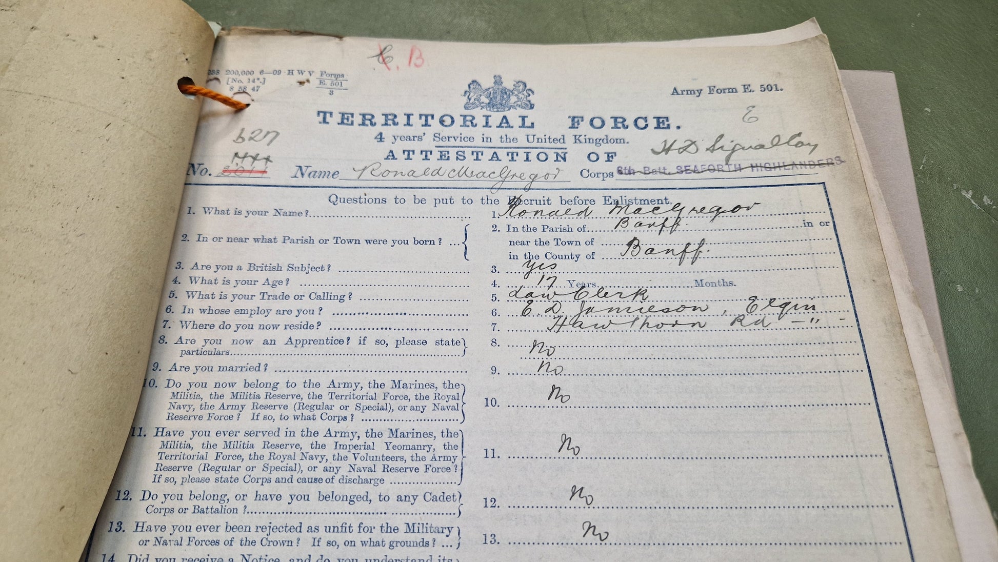 Commissioned into the 6th Seaforth Highlanders