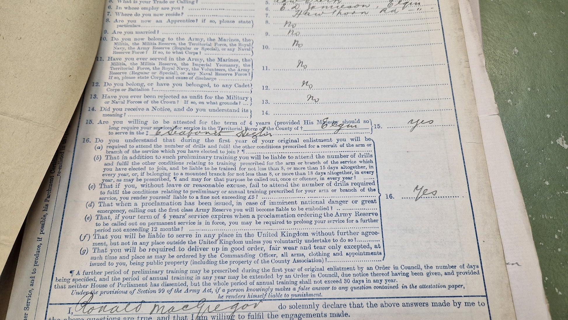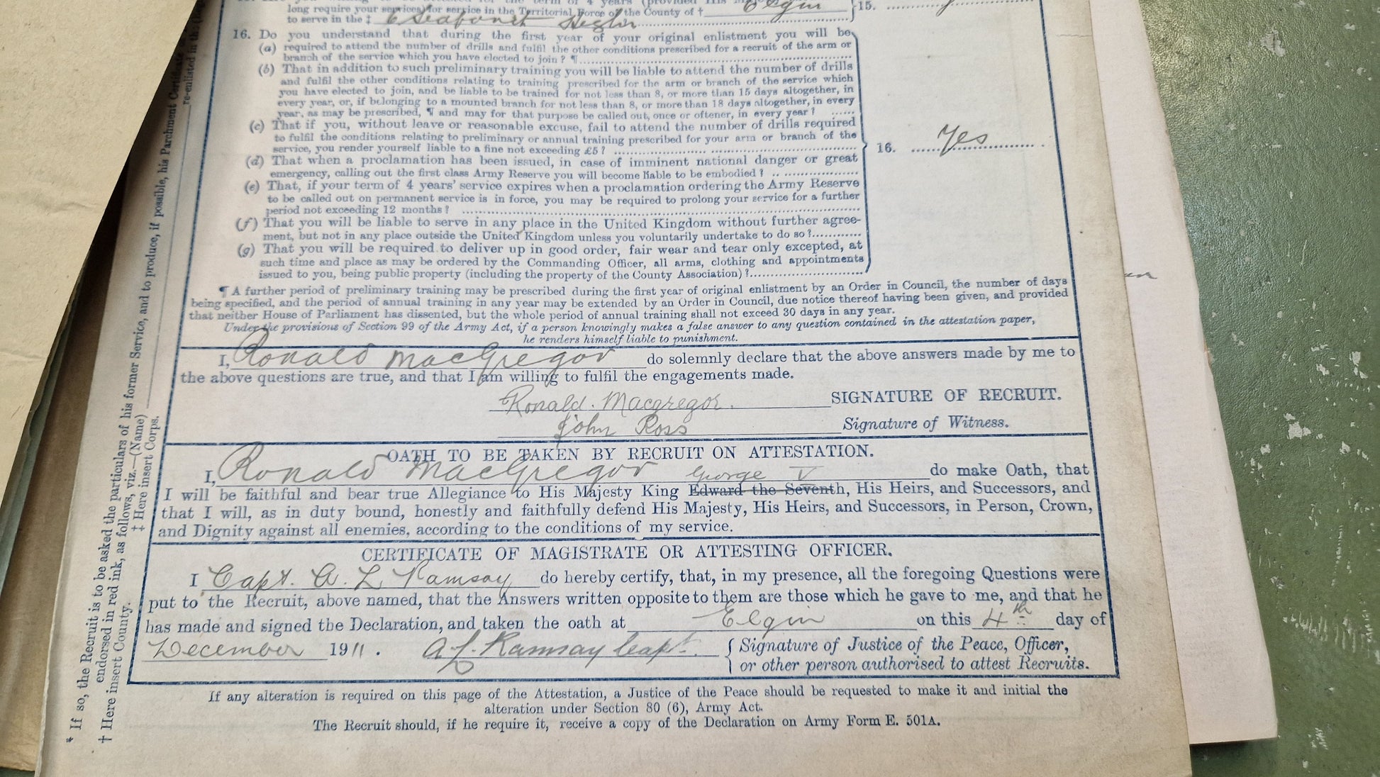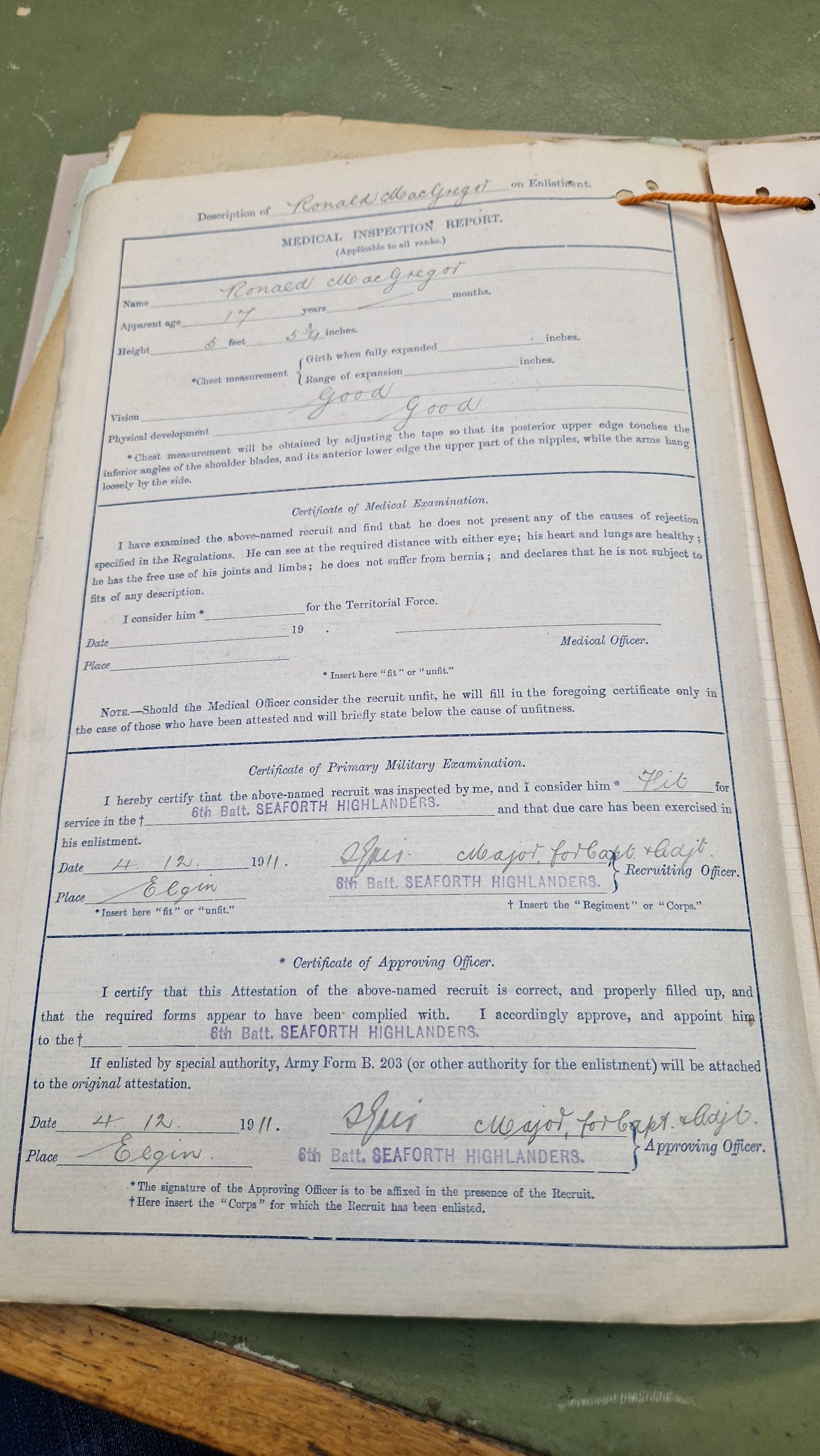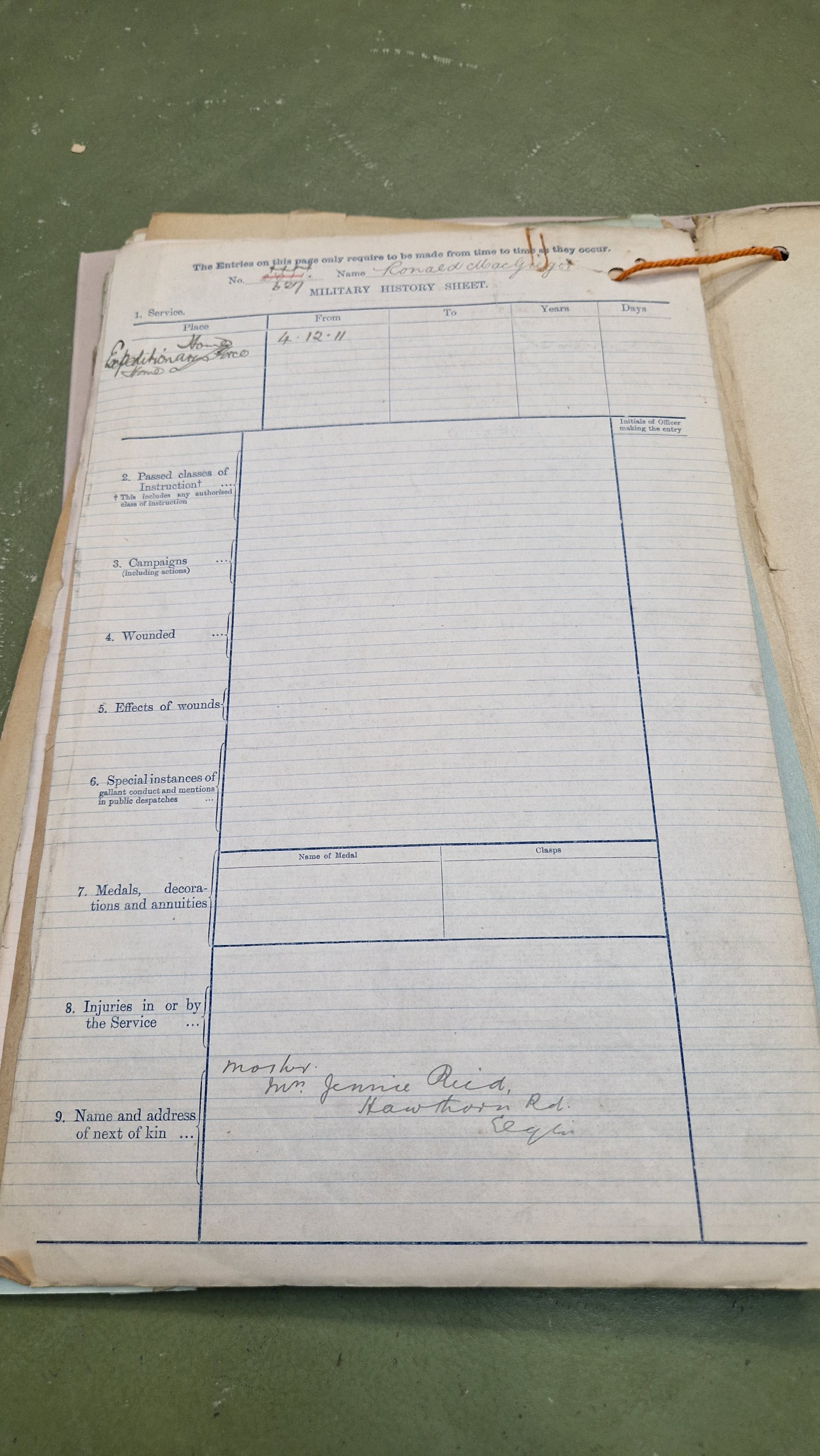 Enlisted aged 17 in 1911