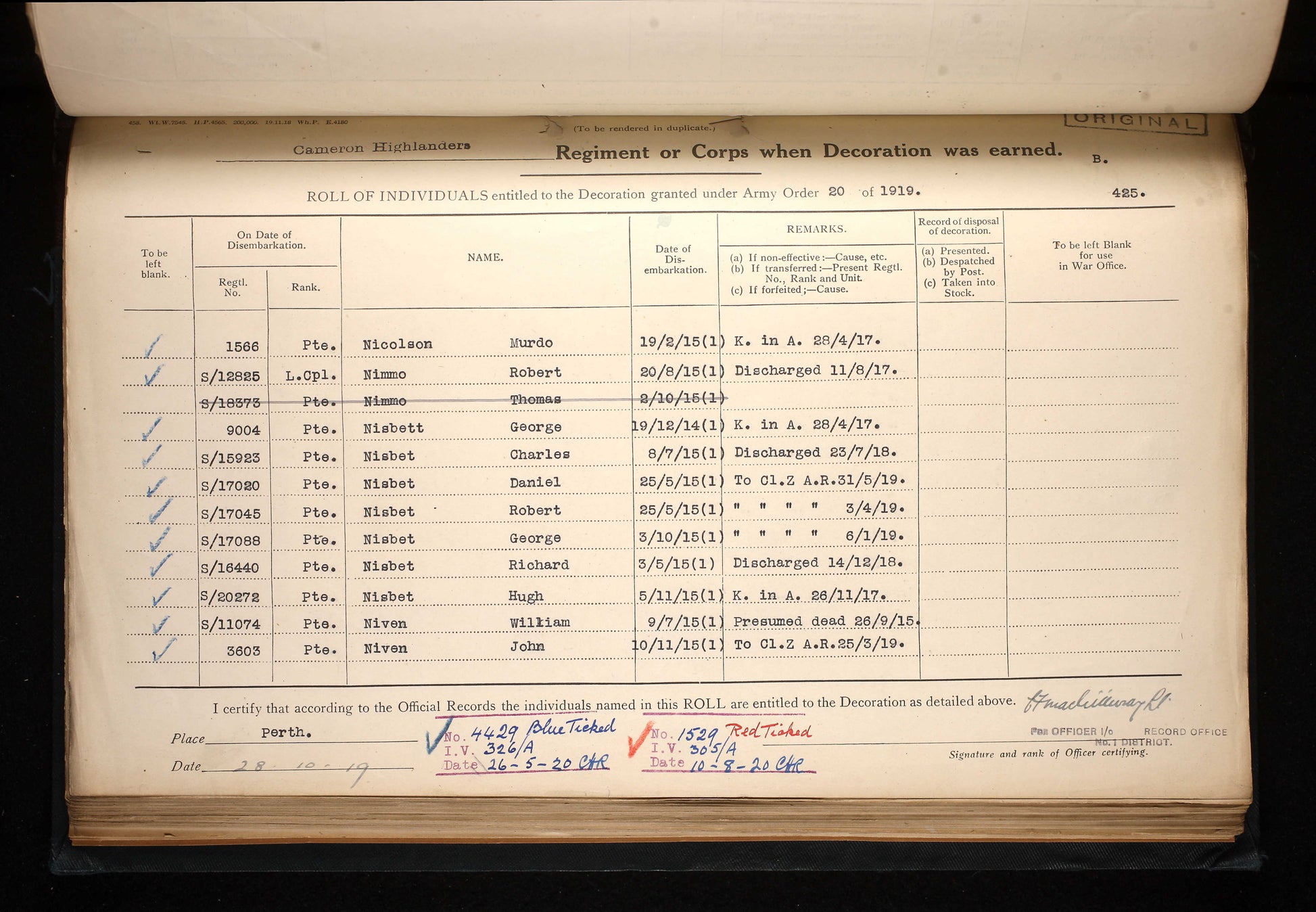 First World War British Medal Trio - Lance Corporal Thomas Nimmo, 6th Bn. Cameron Highlanders