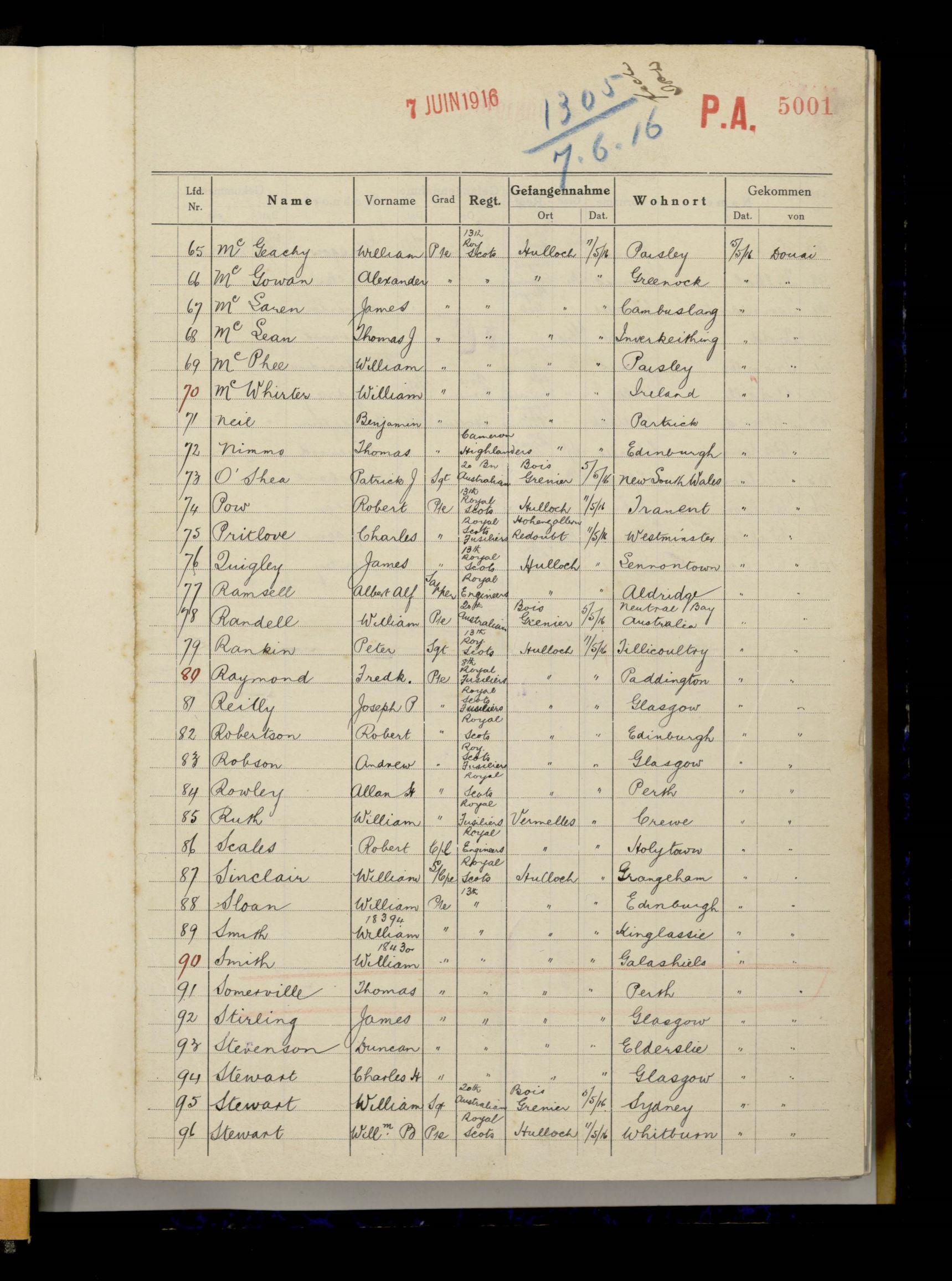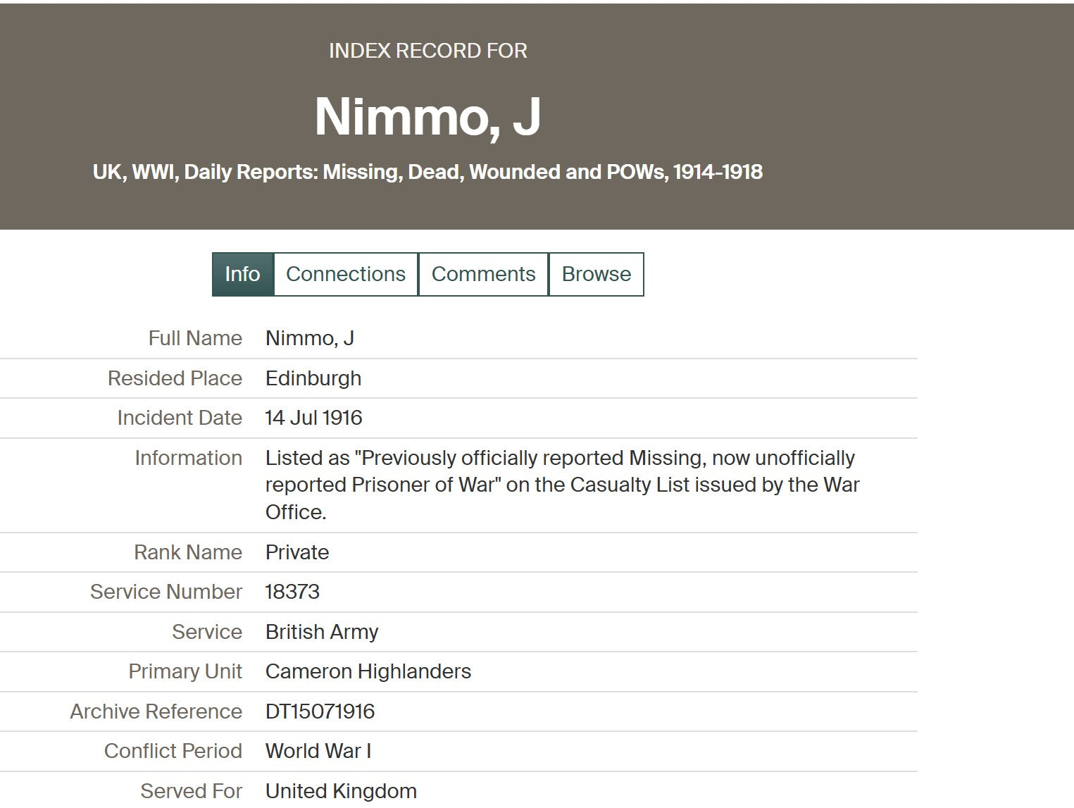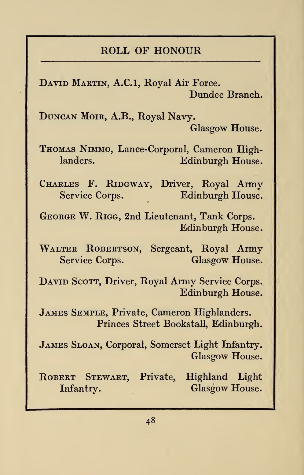 From Edinburgh and worked for John Menzies & Company Limited. Listed in their Roll of Honour as working at Edinburgh House