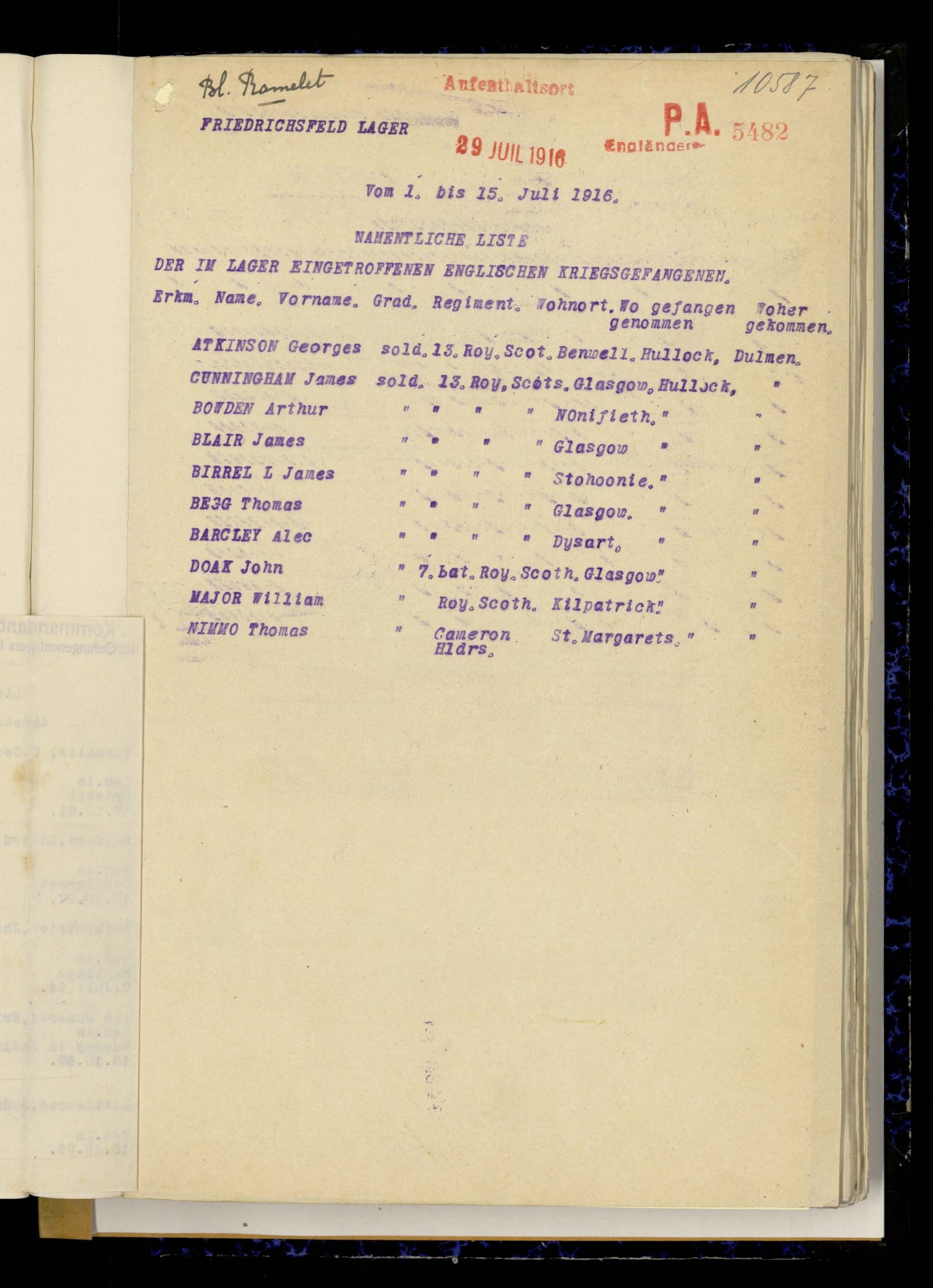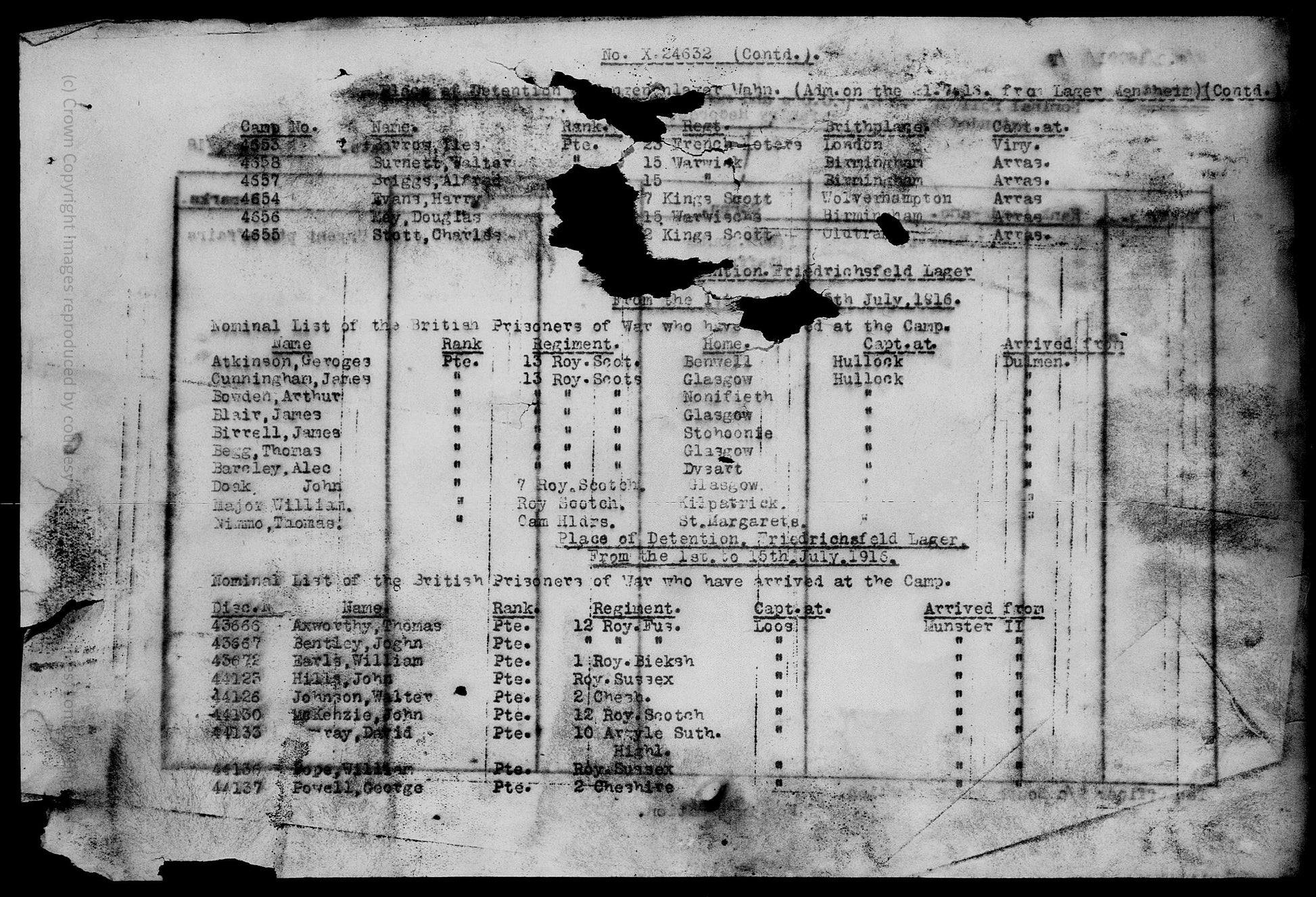 Repatriated aboard S.S. Arbroath 2nd December 1918