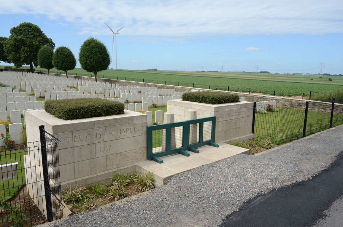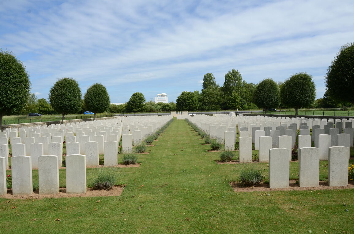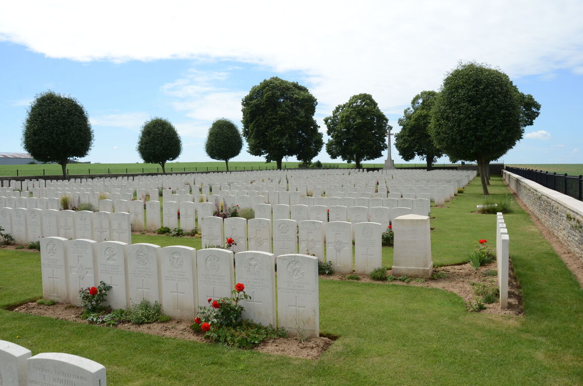 He is buried at Feuchy Chapel British Cemetery, Wancourt (Grave III.D.7), France, and is commemorated by the Commonwealth War Graves Commission. His headstone bears the personal inscription: “ALWAYS REMEMBER.”