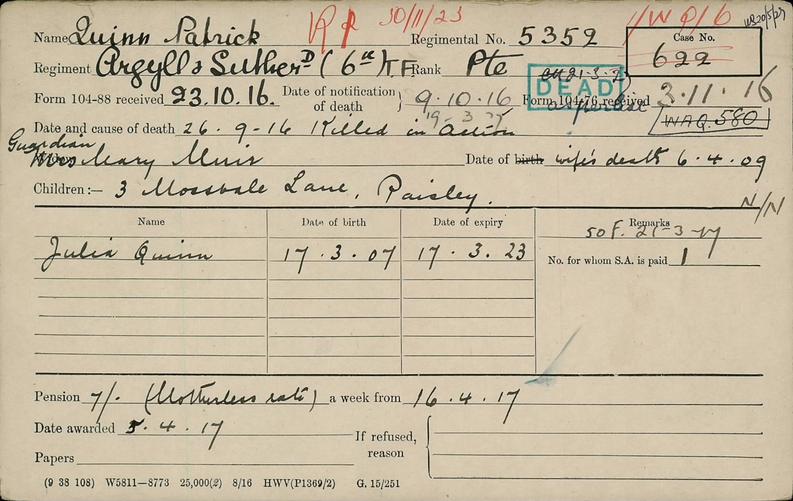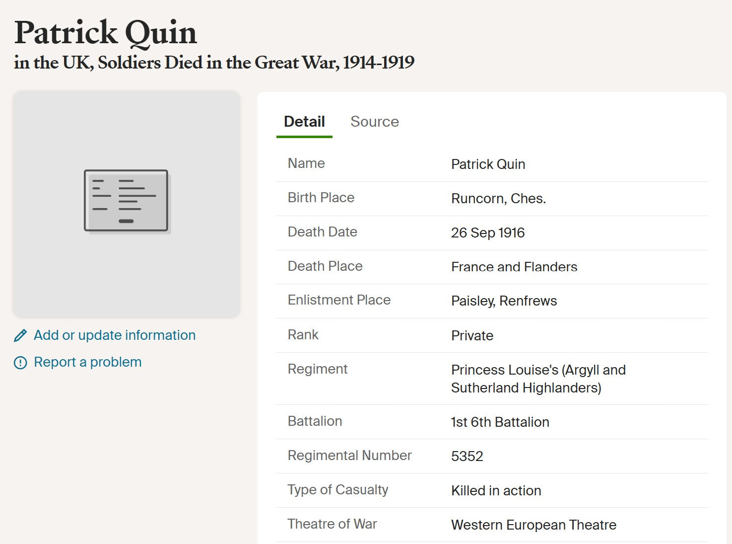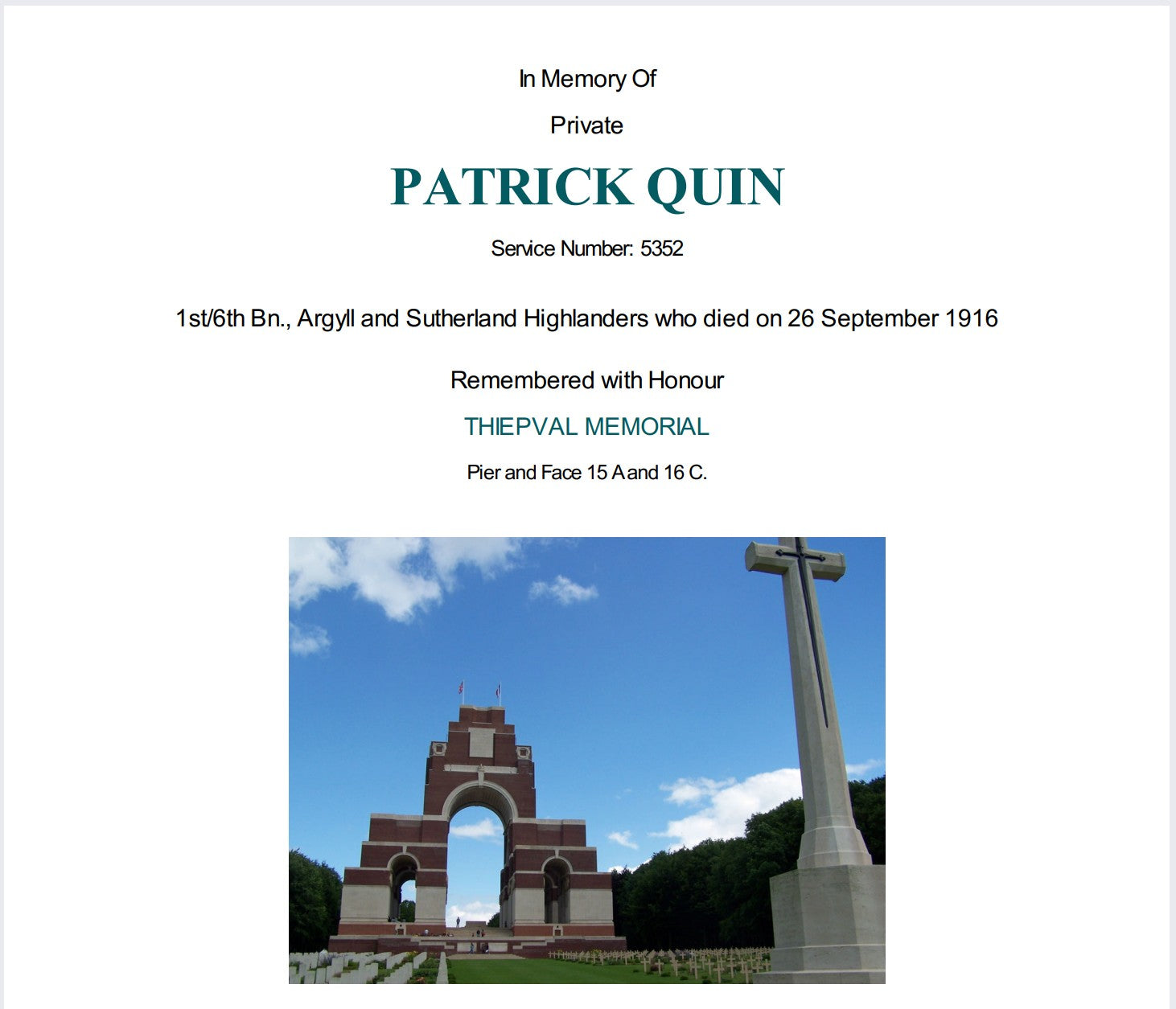 First World War Medal Pair - Private Patrick Quinn, 6th Bn. Argyll & Sutherland Highlanders
