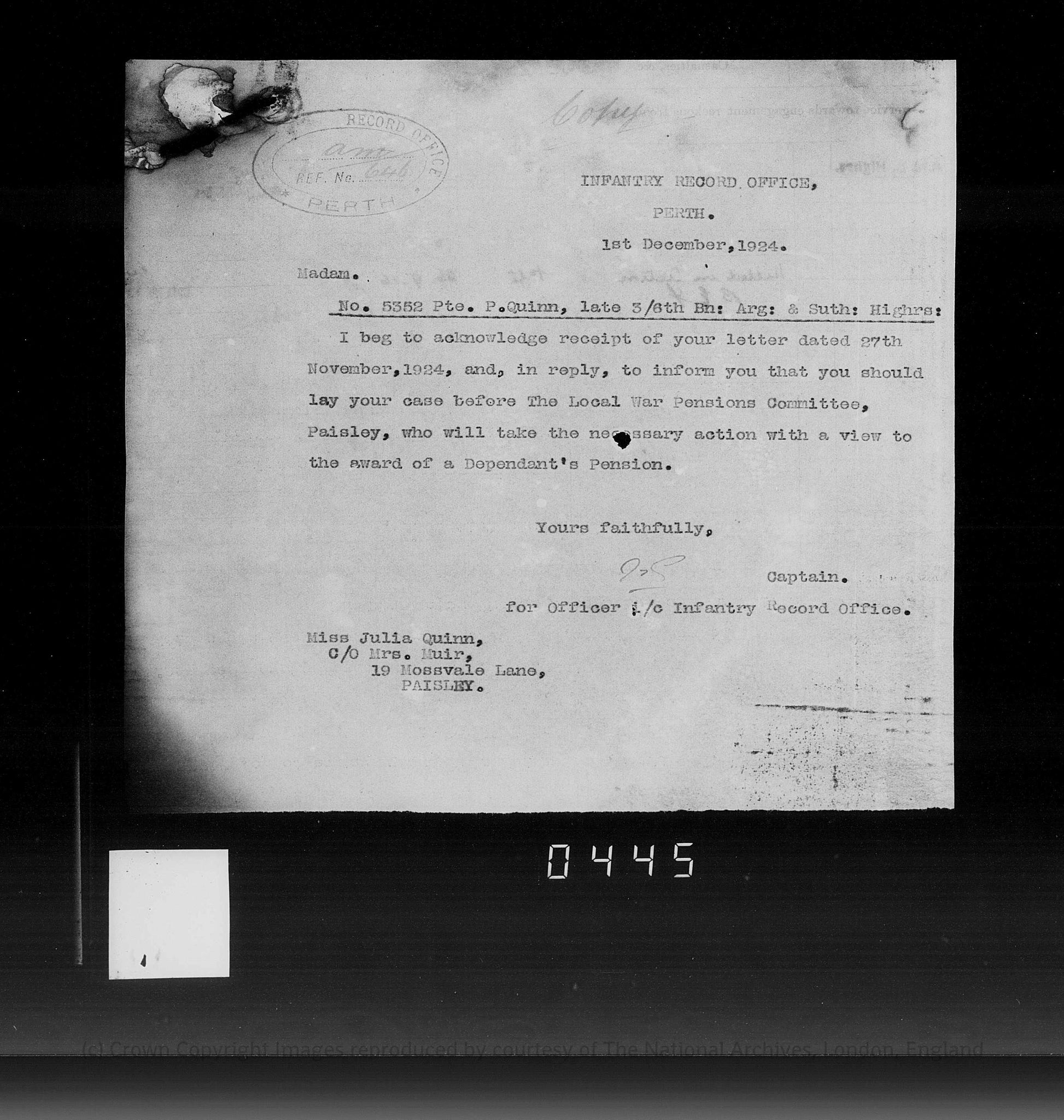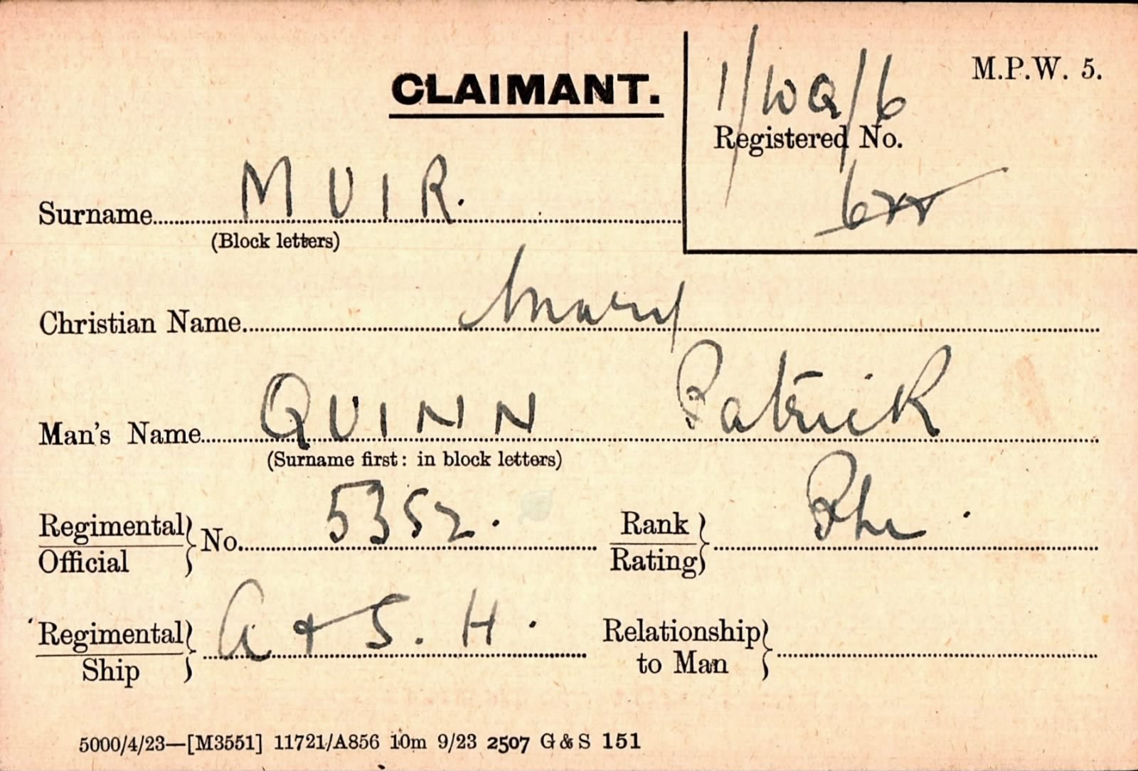 British War Medal - 5352 PTE. P. QUINN. A. & S. HIGHRS.