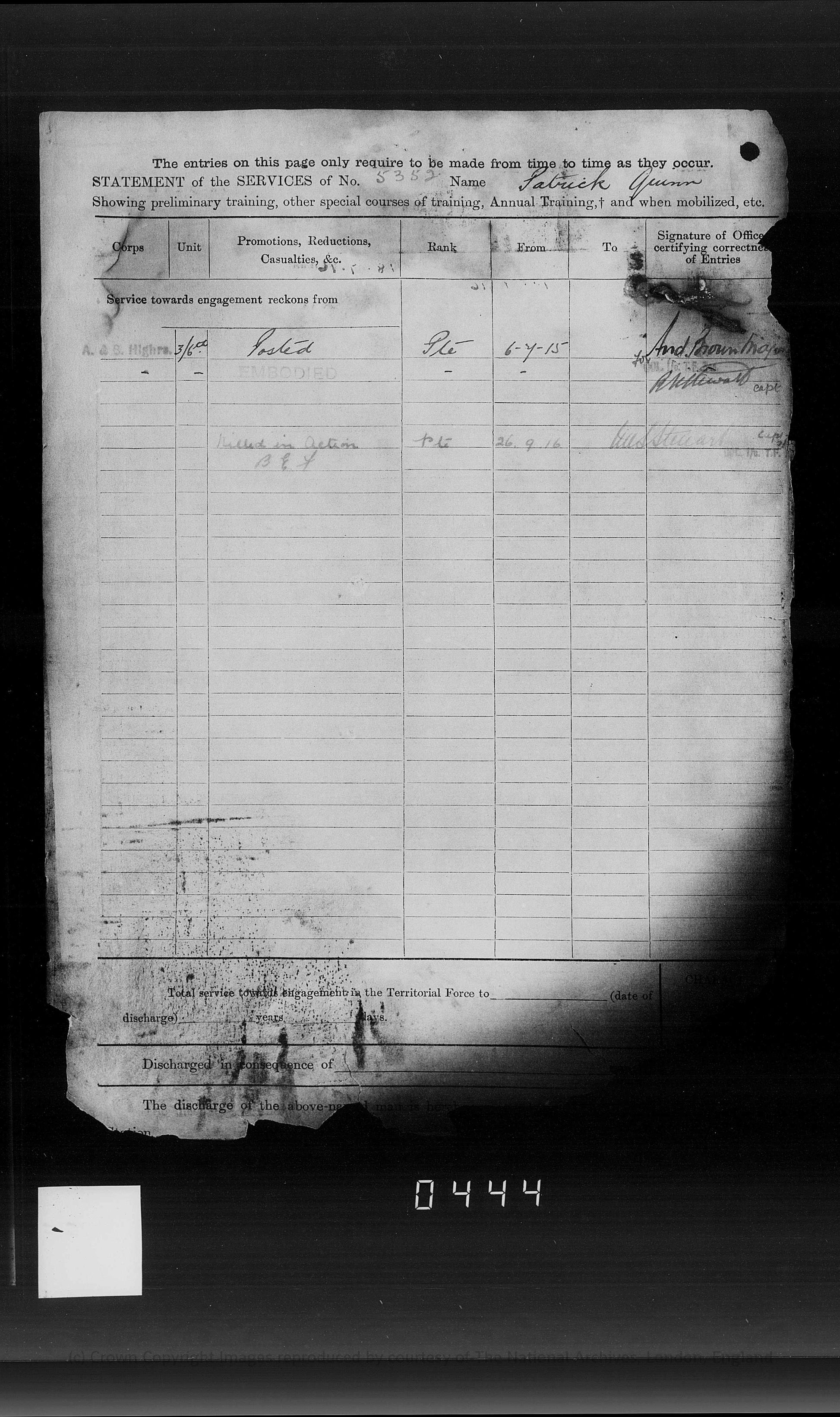 Killed in Action 26th September 1916 - Battle of the Somme, "Capture of Morval"