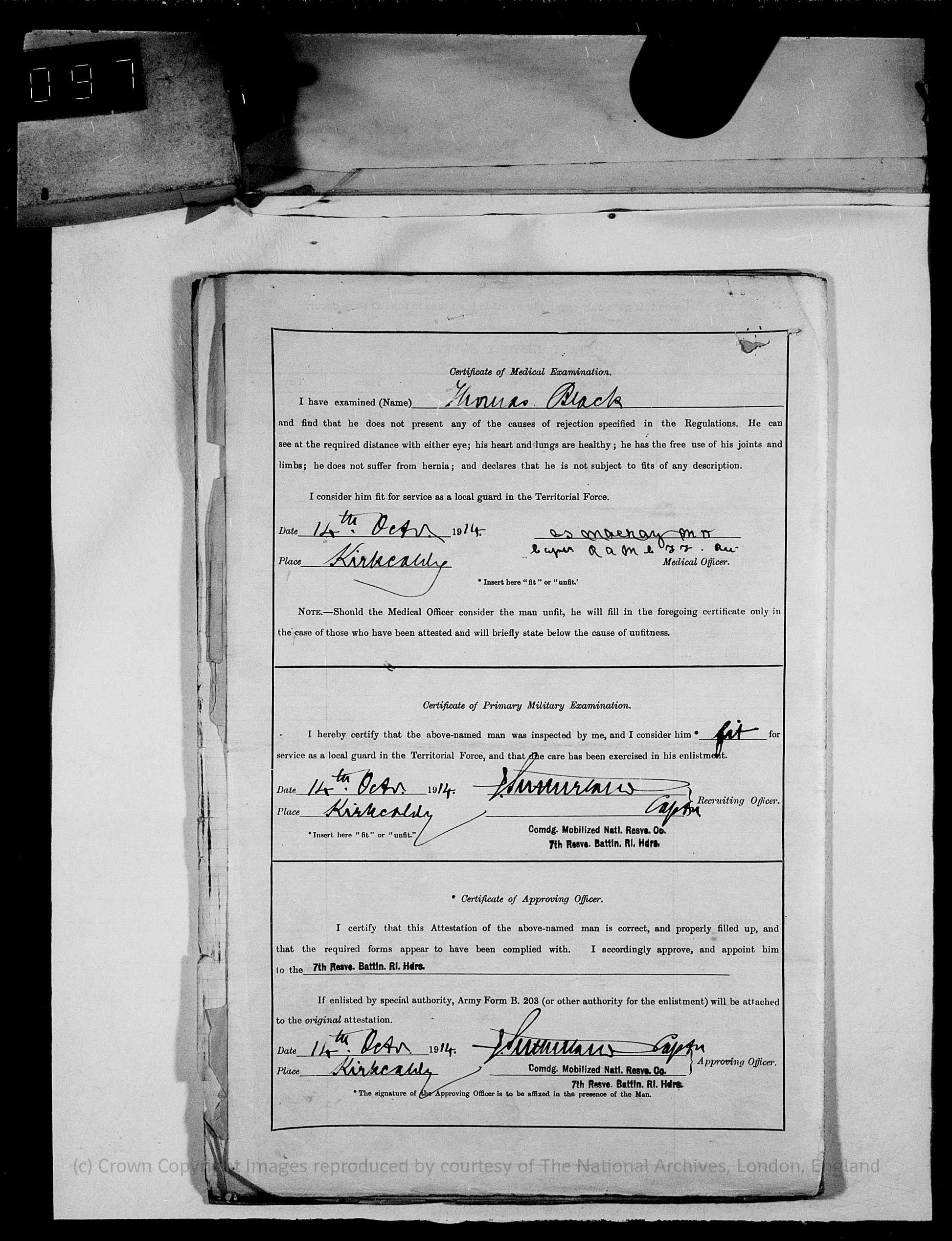 Worked as a Miner when he enlisted aged 21 in Kirkcaldy, 12th March 1884