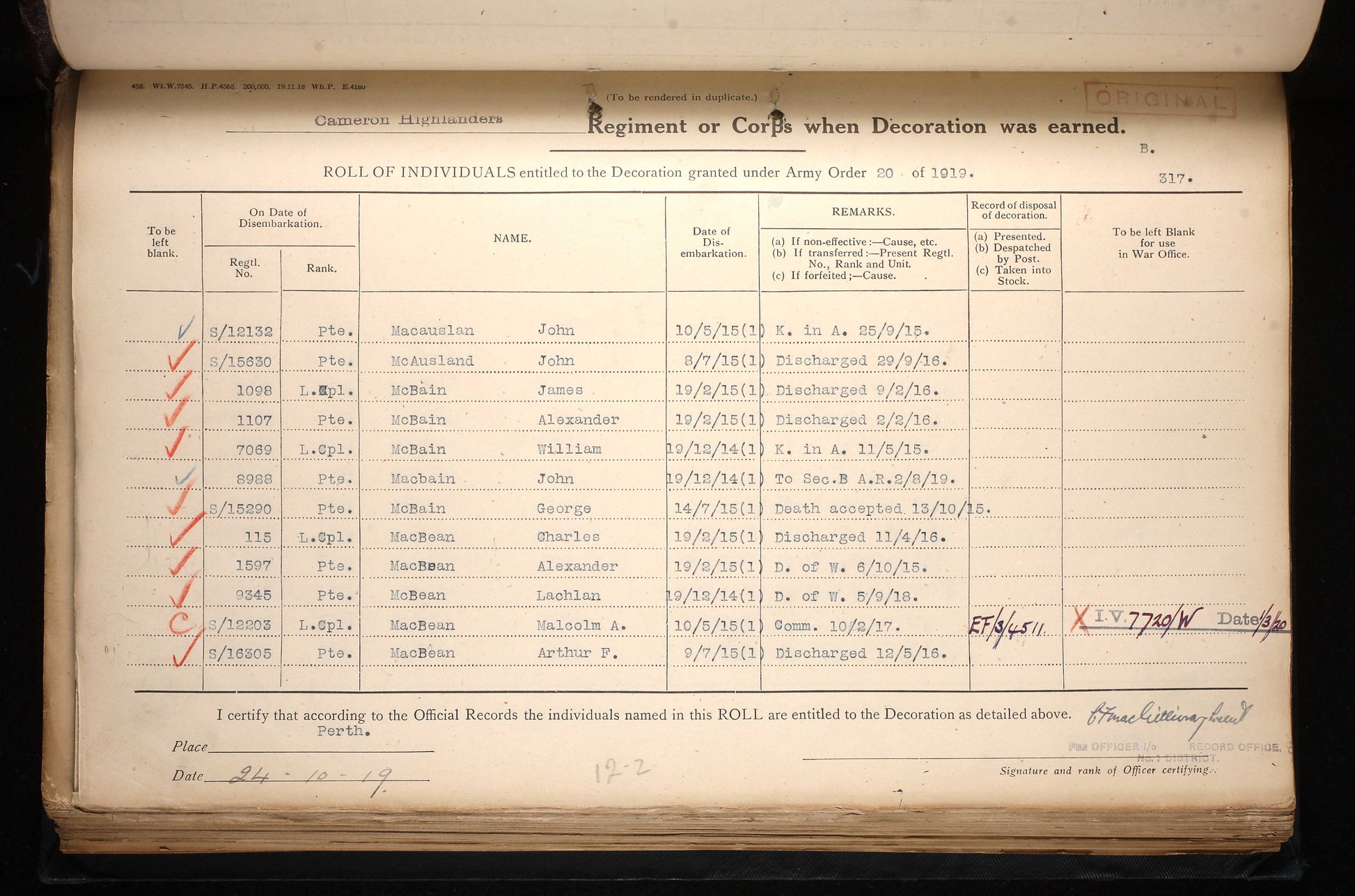 McBain enlisted at Inverness on 9 November 1904, aged just 14, joining the Queen’s Own Cameron Highlanders as a boy soldier. By the time war broke out in August 1914, he was an experienced professional soldier and had risen to the rank of Lance Corporal, receiving regimental number 7069.