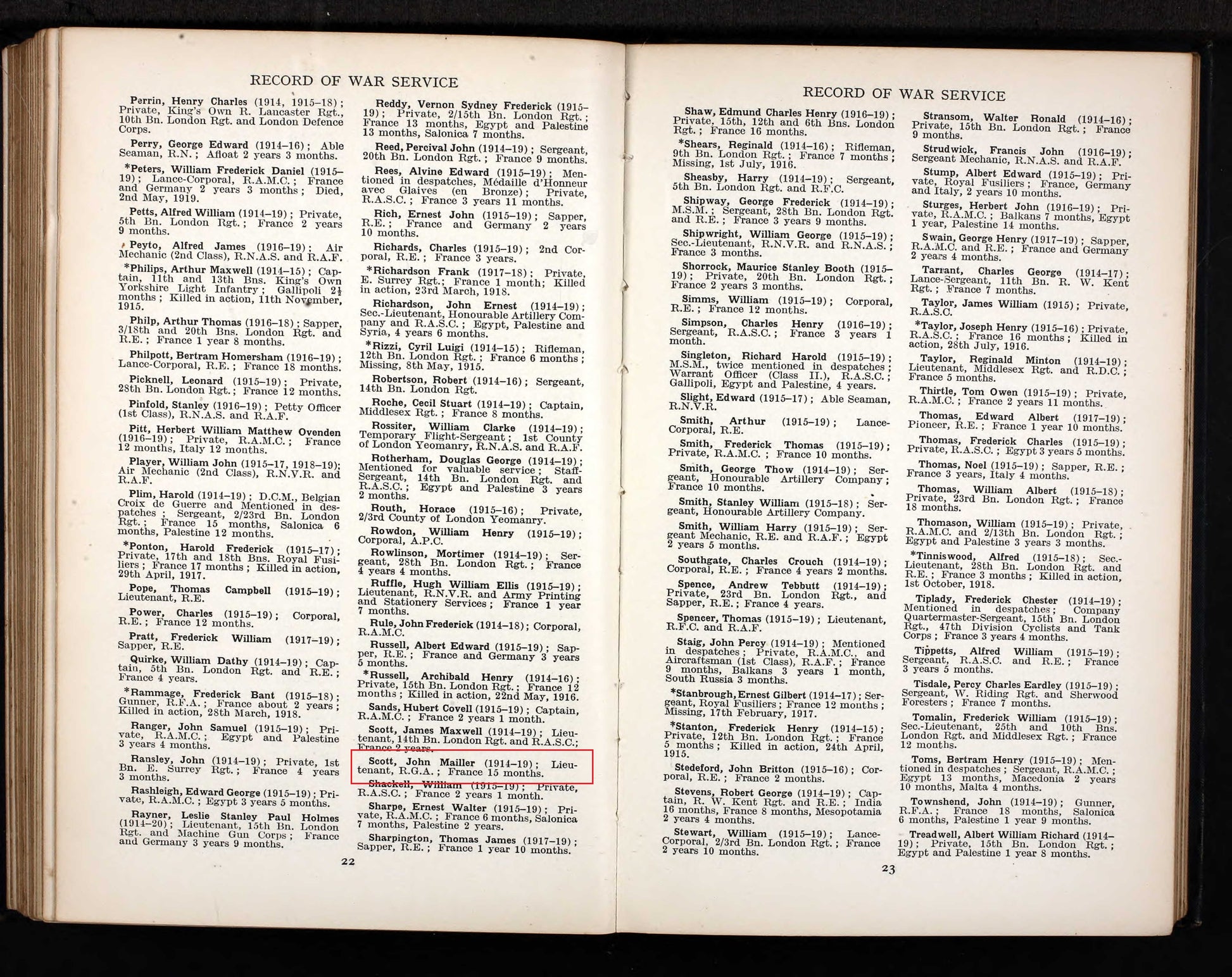 Worked in London for the London City Council Architect Department and features in their First World War Roll of Honour - served France as an Officer in the RGA for 15 months