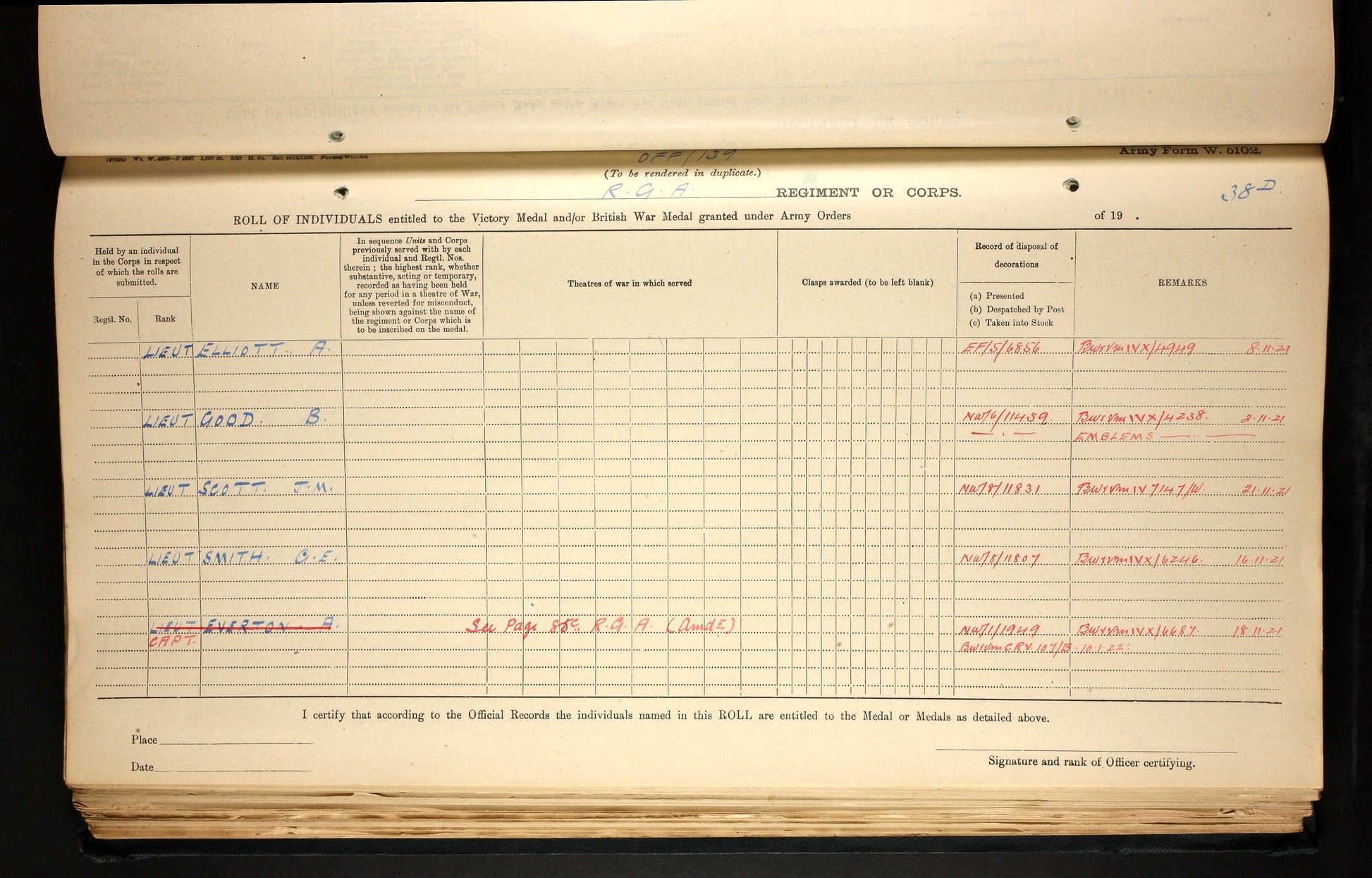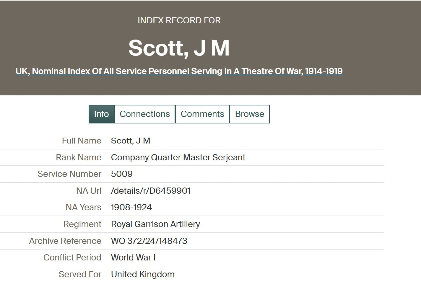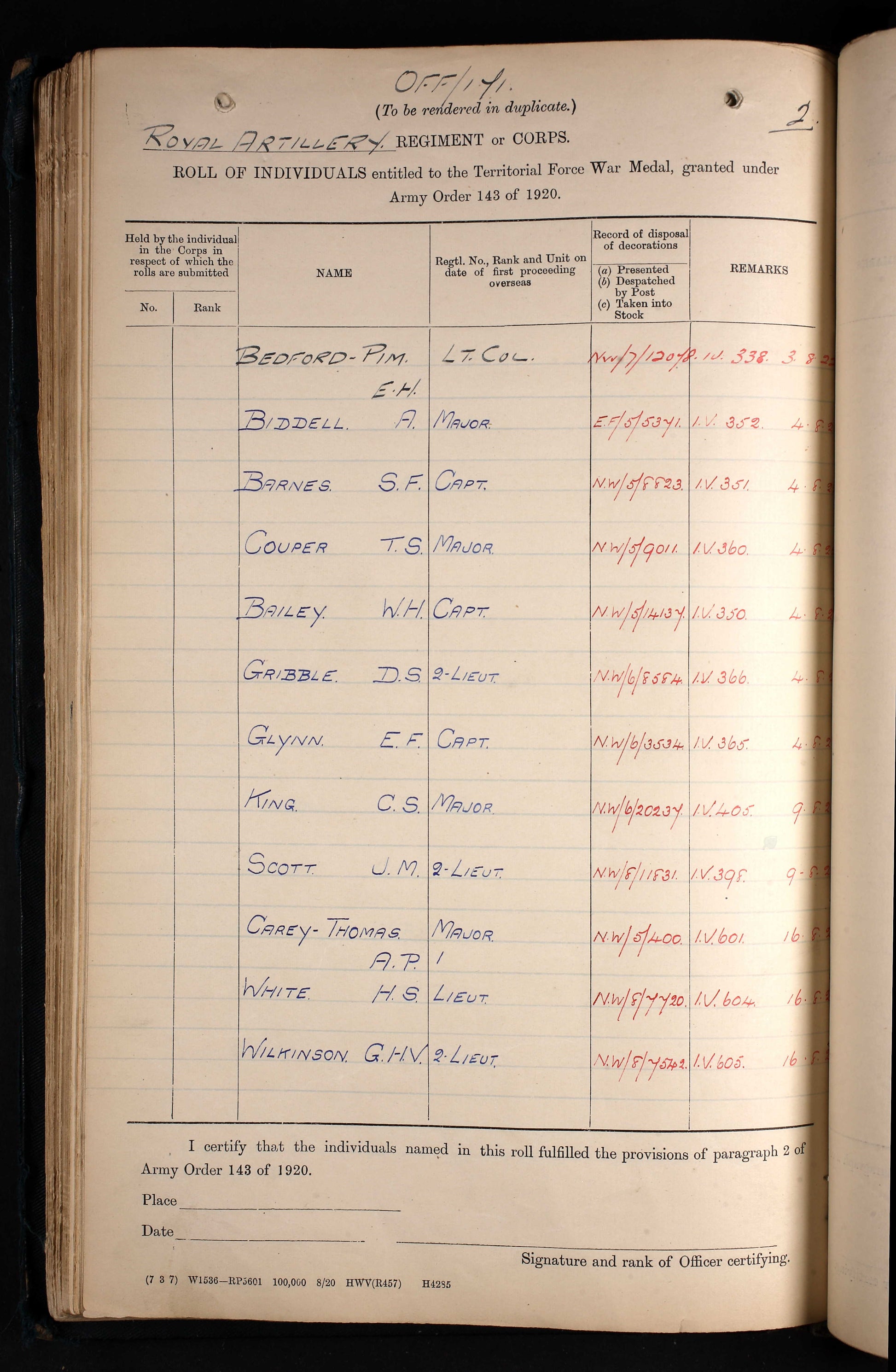 Territorial Force War Medal - 2 LIEUT. J. M. SCOTT. R.A.