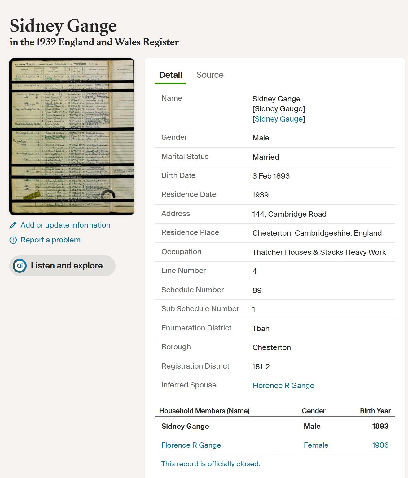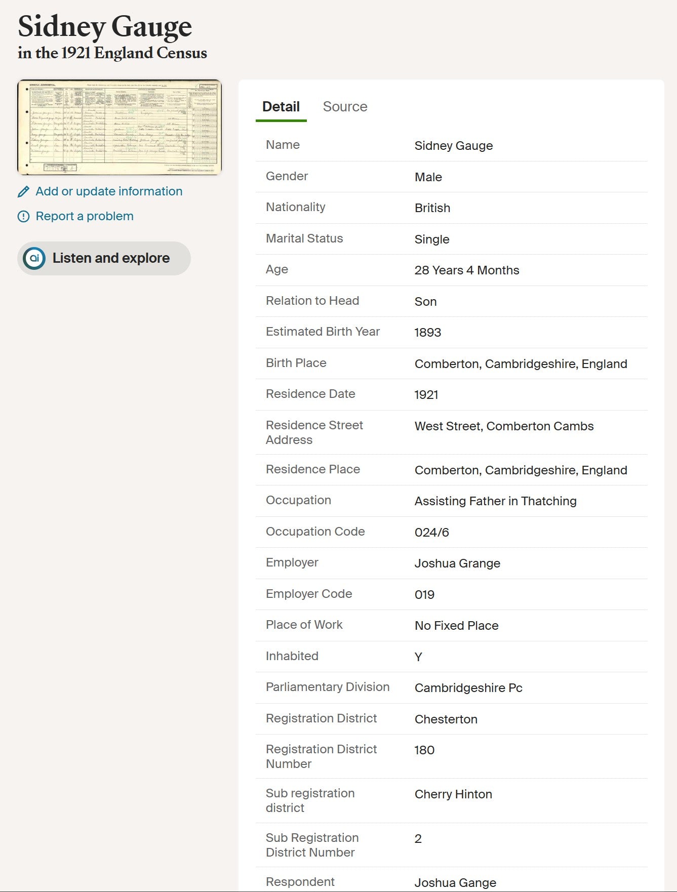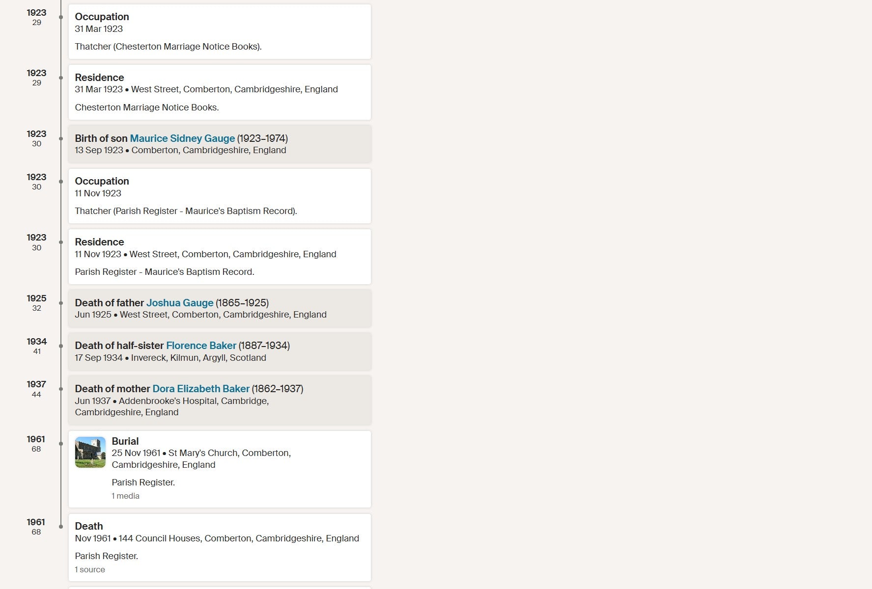 He was demobilised in April 1919 and returned to Comberton, resuming his civilian occupation as a thatcher. He married Florence Rose Hagger in 1923 and later resided at Cambridge Road, Chesterton. By 1939 he was recorded as a thatcher engaged in heavy work on houses and stacks.
