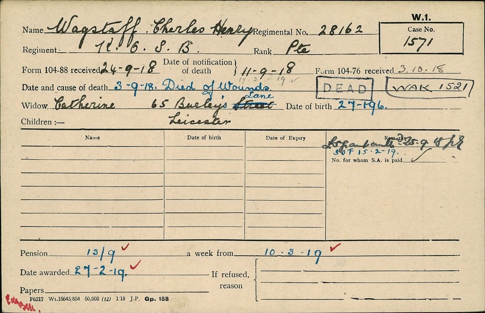 British War Medal - 28162 PTE. C. H. WAGSTAFF. K.O.S.B.