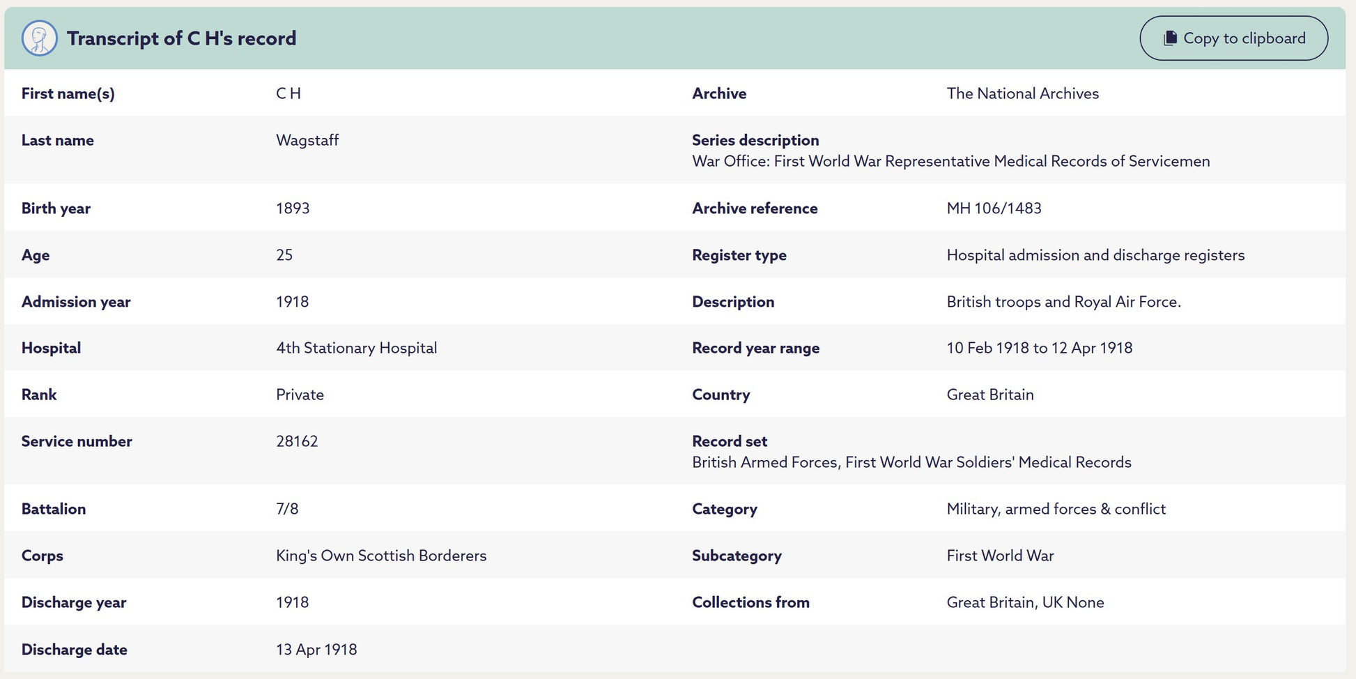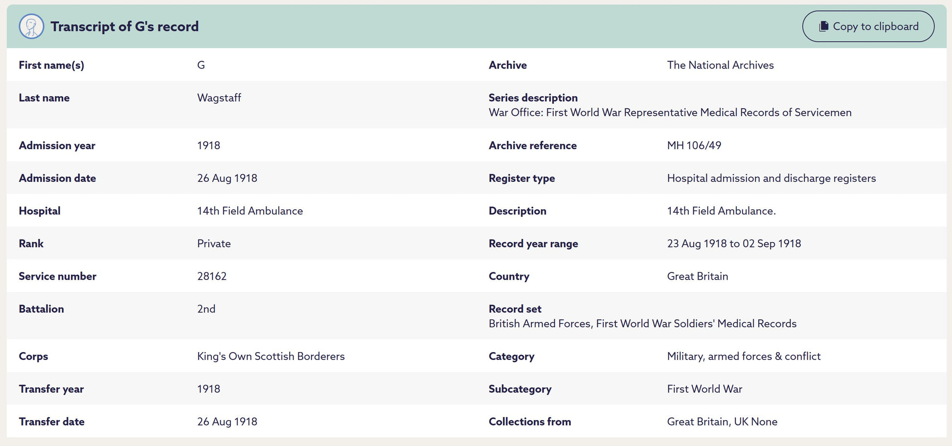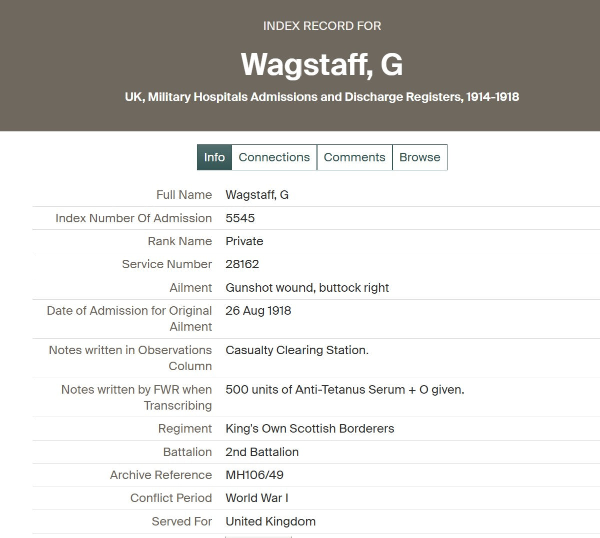Admitted to Field Ambulance - 13th April 1918 (While with 7th/8th KOSB)
