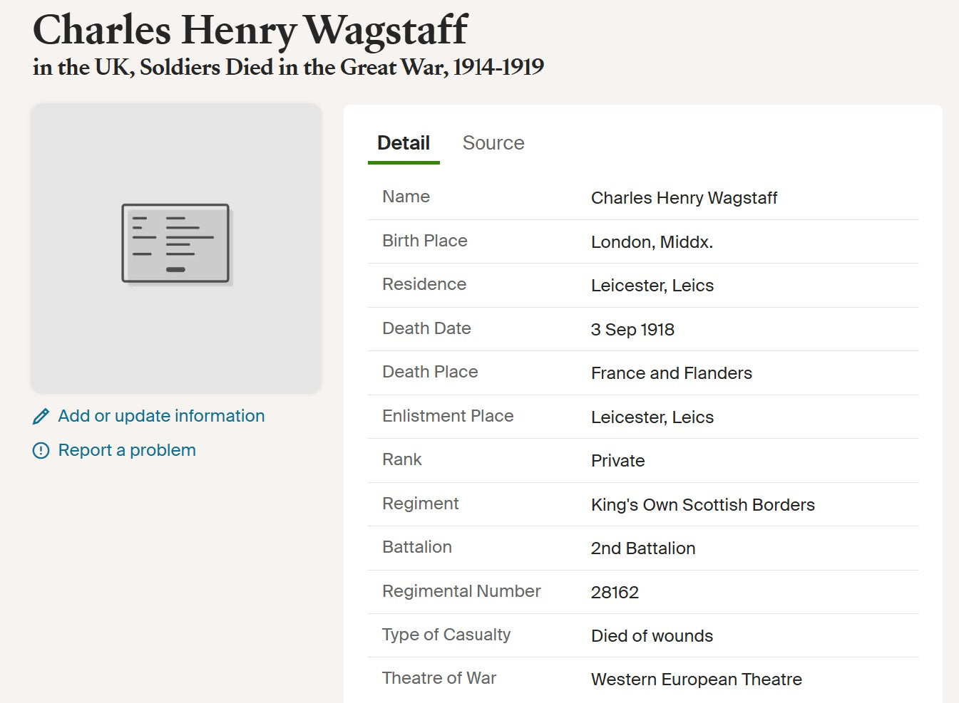 First World War British Medal Pair - Private Charles Henry Wagstaff, 2nd Bn. King's Own Scottish Borderers