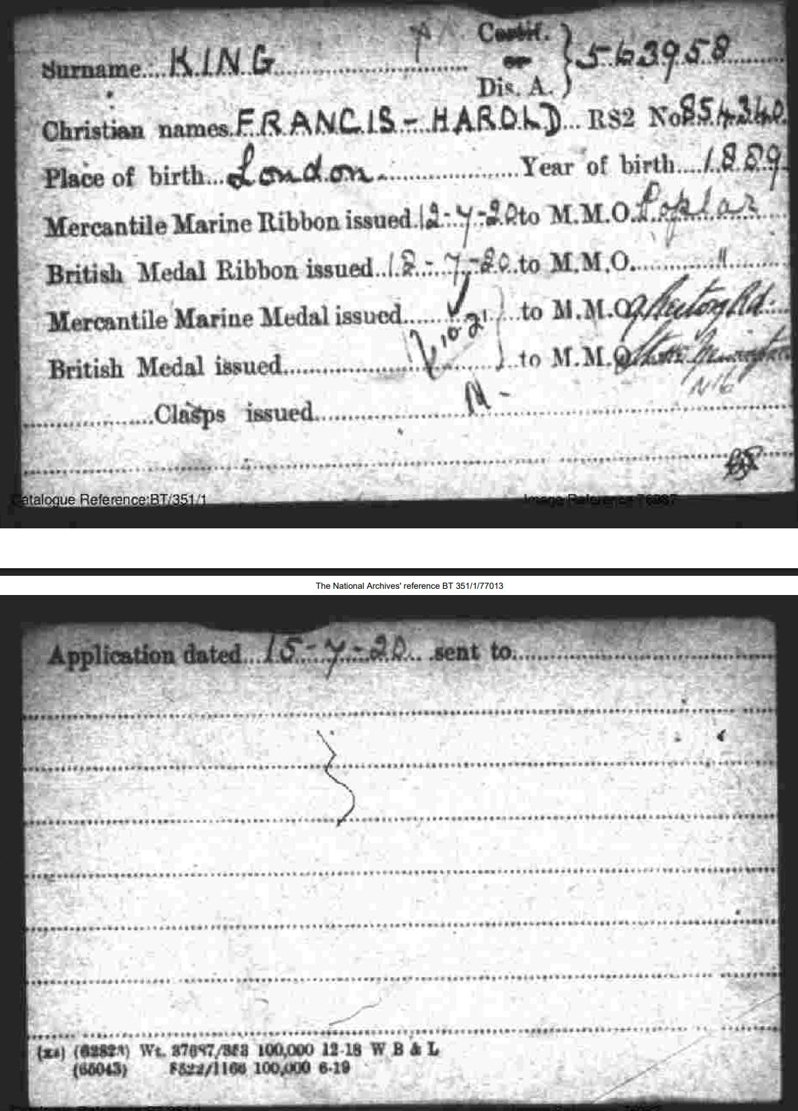 Mercantile Marine Medal - FRANCIS H. KING