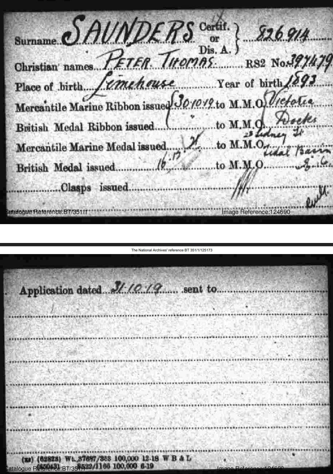 First World War Merchant Navy Medal Pair - Fireman Peter Thomas Saunders