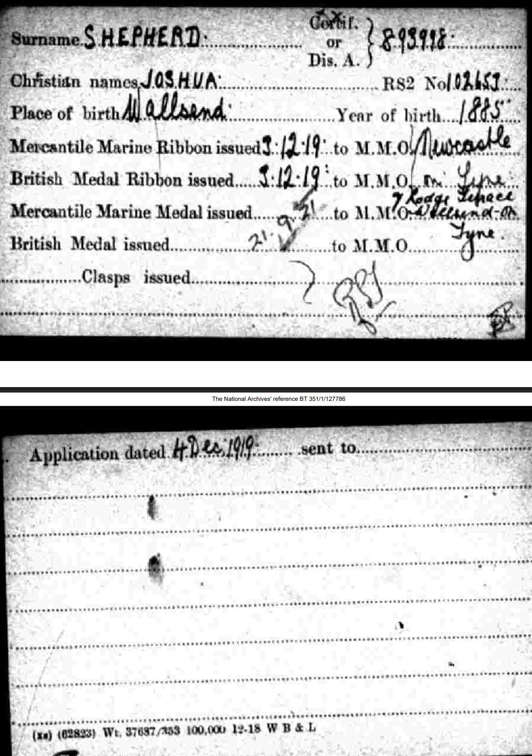 Mercantile Marine Medal - JOSHUA SHEPHERD