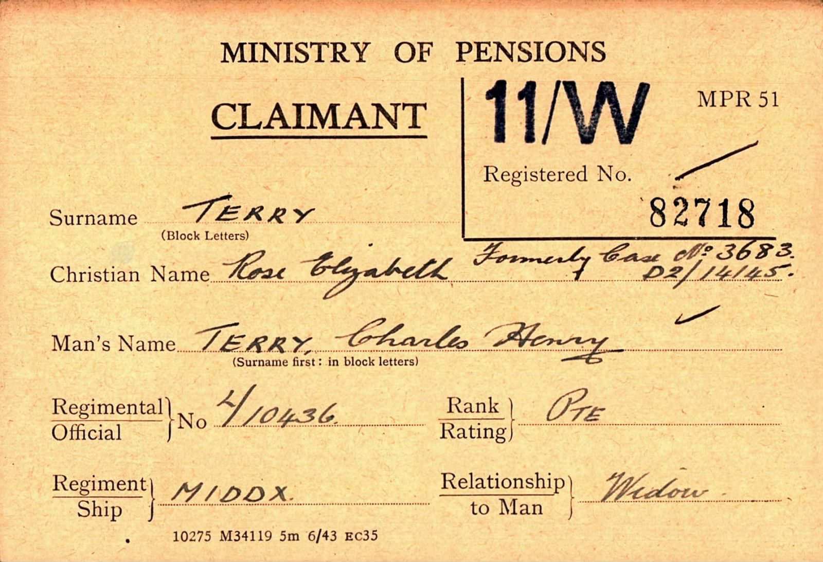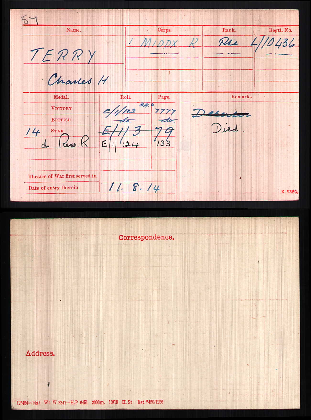 British War Medal - L-10436 PTE. C. H. TERRY. MIDD'X R.