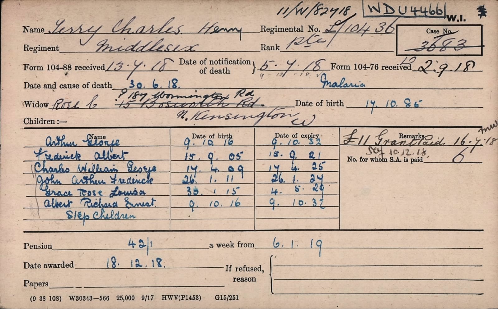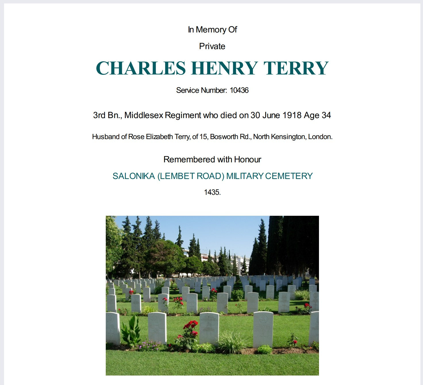 Husband of Rose Elizabeth Terry, of 15 Bosworth Road, North Kensington, London