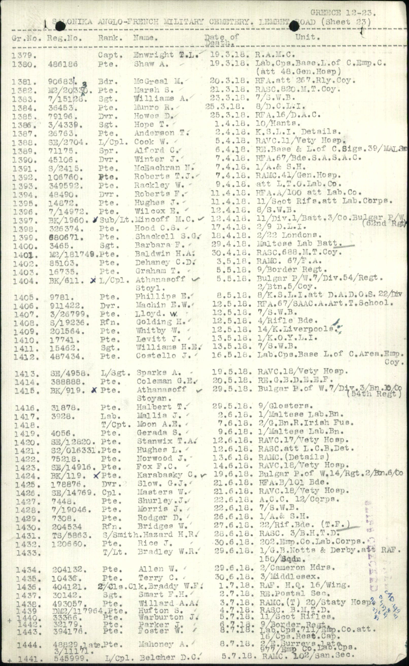 Buried Salonika (Lembet Road) Military Cemetery, Greece
