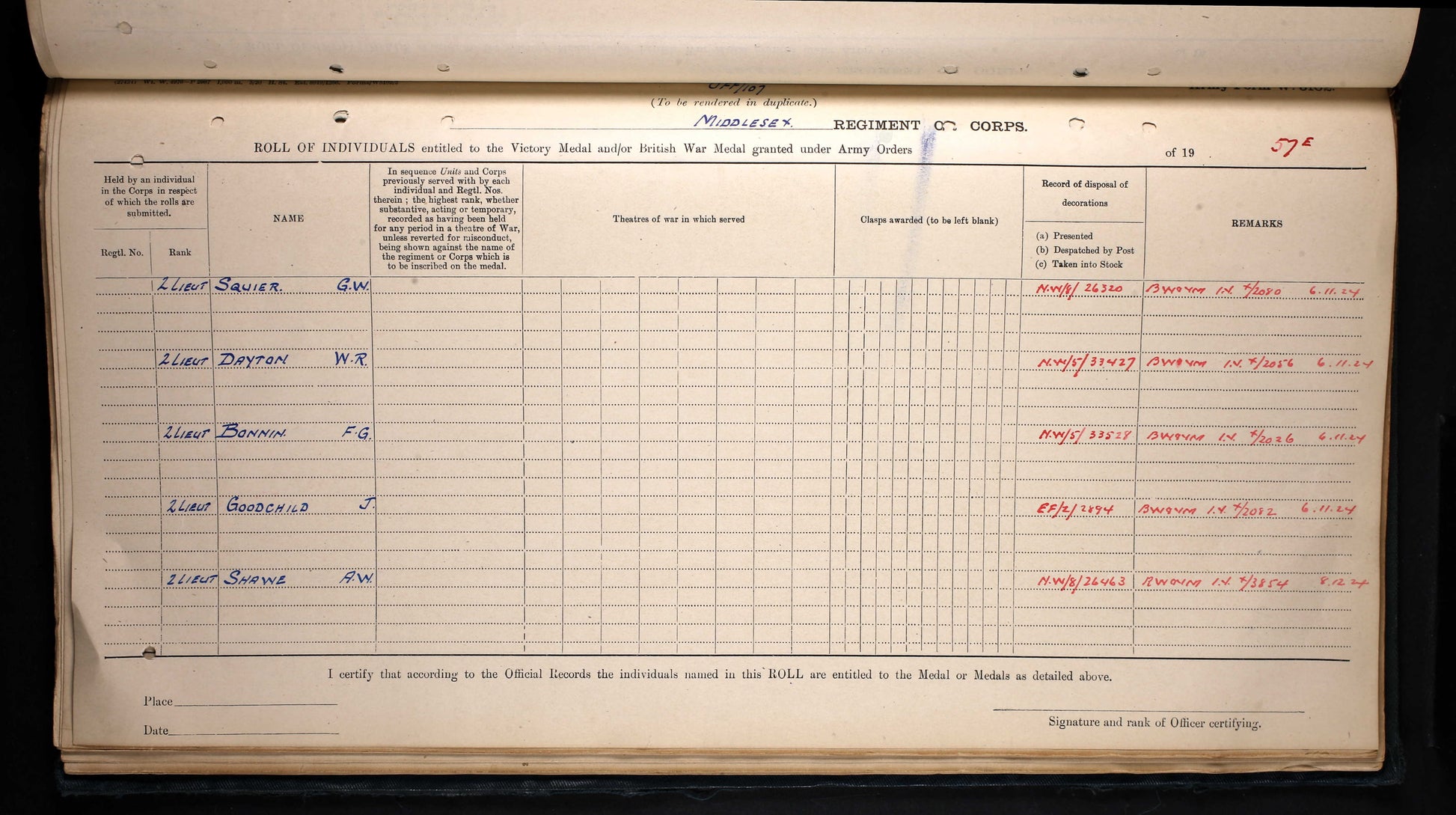 First & Second World War Medal Group of 6 – Second Lieutenant Alfred William Shawe, Middlesex Regiment, later Royal Army Service Corps (WW2)