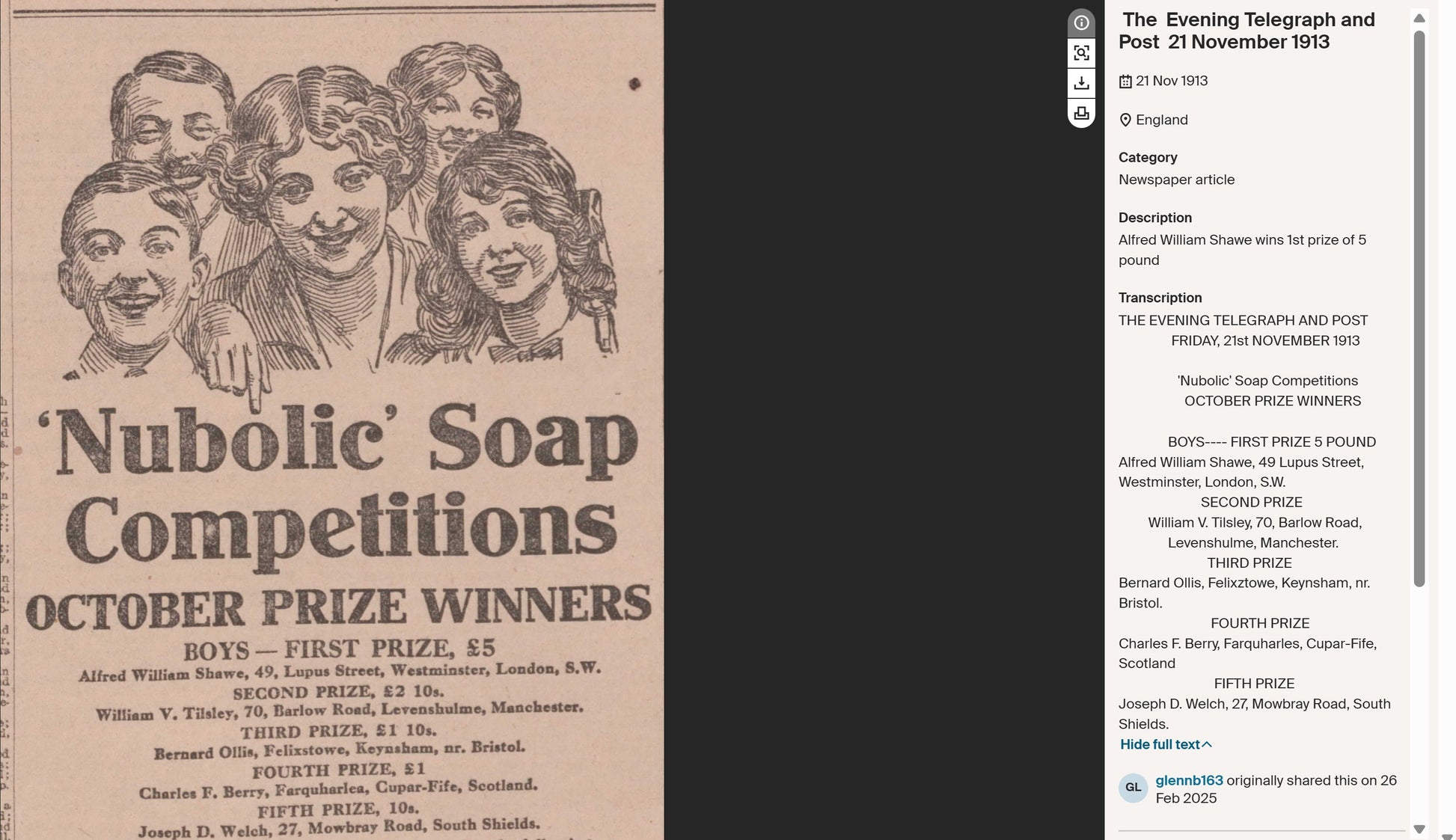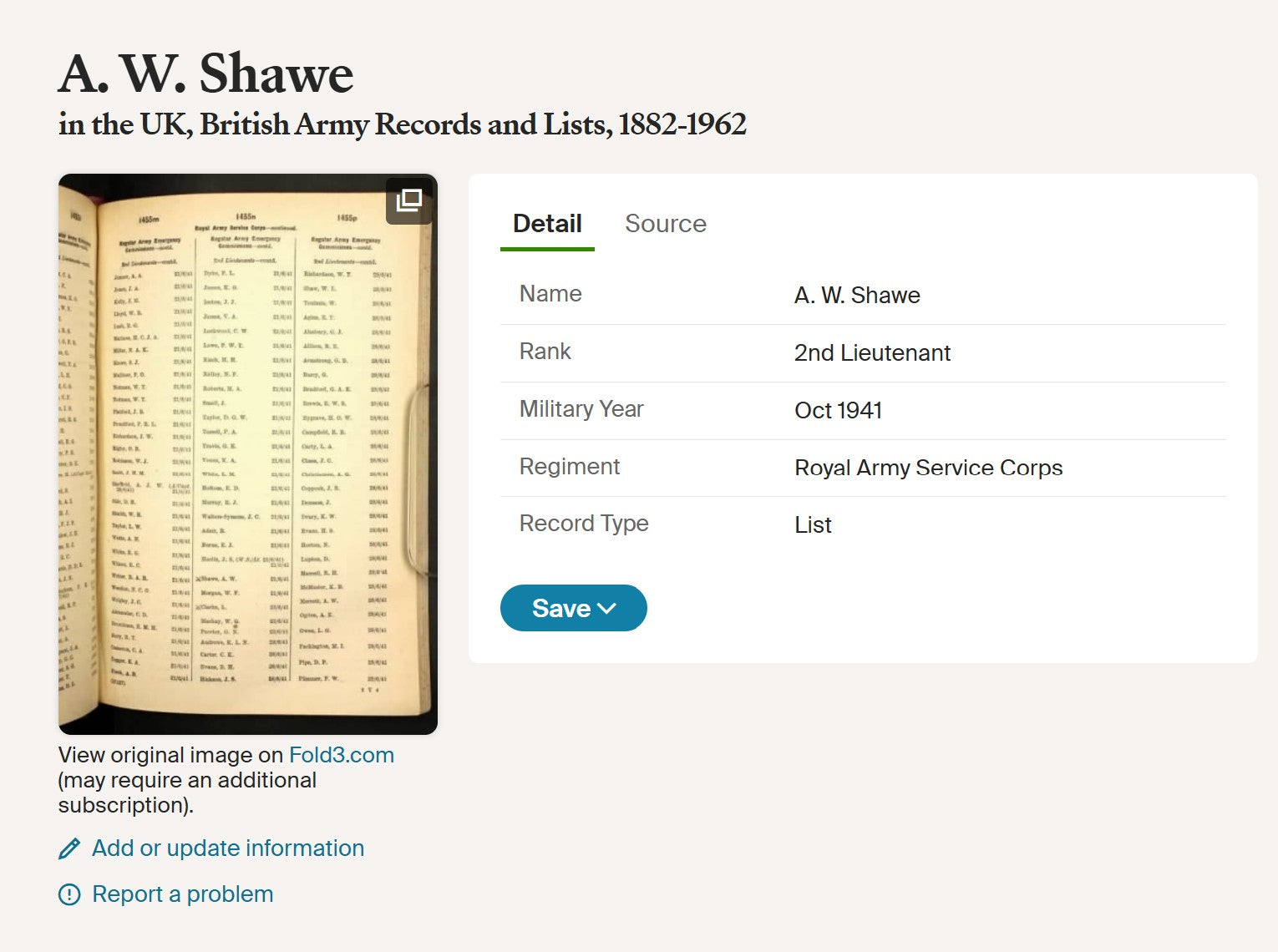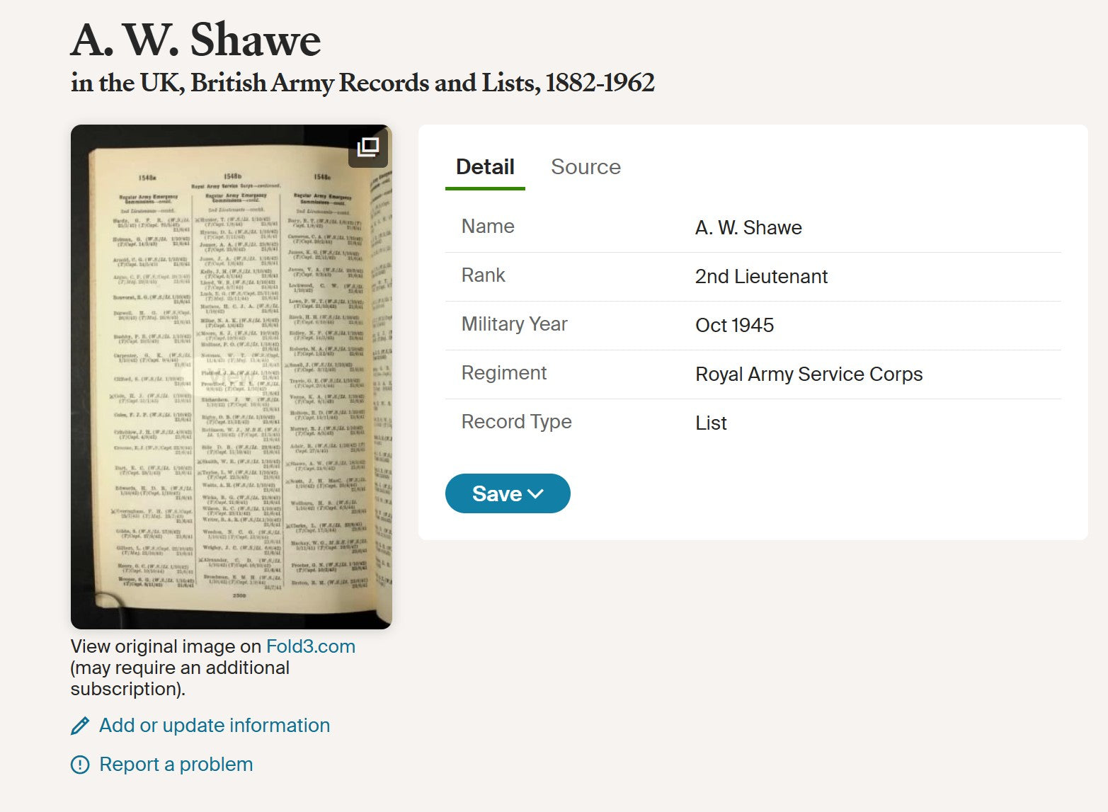 Alfred William Shawe was born on 22 August 1898 at Edinburgh, Midlothian, the son of Alfred Richard Shawe and Jeannie (Jane) Maclaren (MacLaren) Leishman. By 1911 the family were residing in London, and the address later closely associated with him was 49 Lupus Street, Westminster, which would remain the family home for many years and to which his First World War medals were sent.