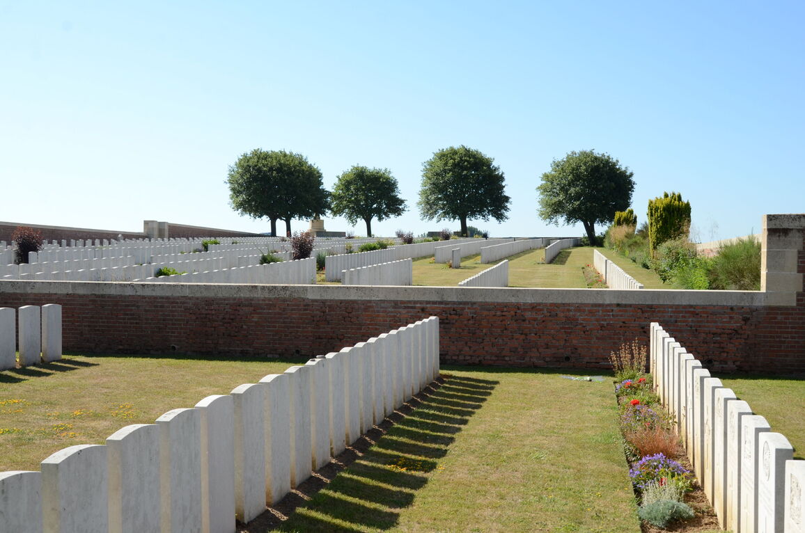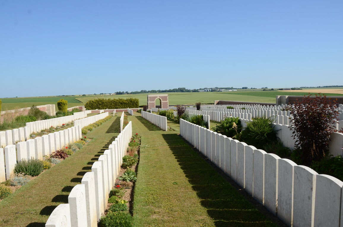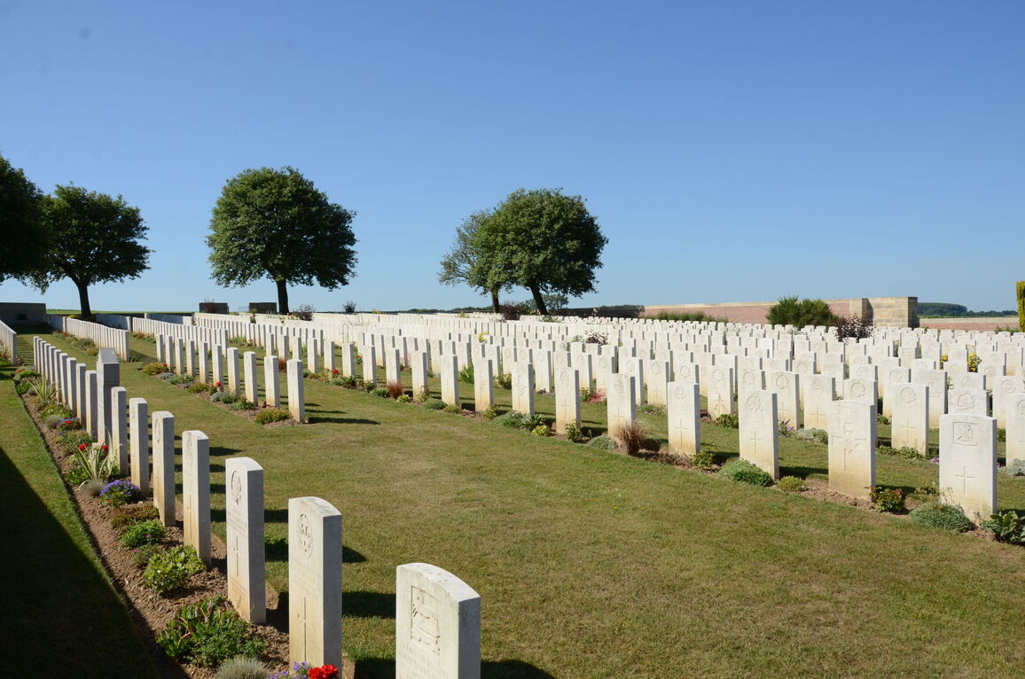 He is buried at Puchevillers British Cemetery, Grave Reference V.B.45. His headstone bears the inscription: “On whose soul sweet Jesus have mercy R.I.P.”