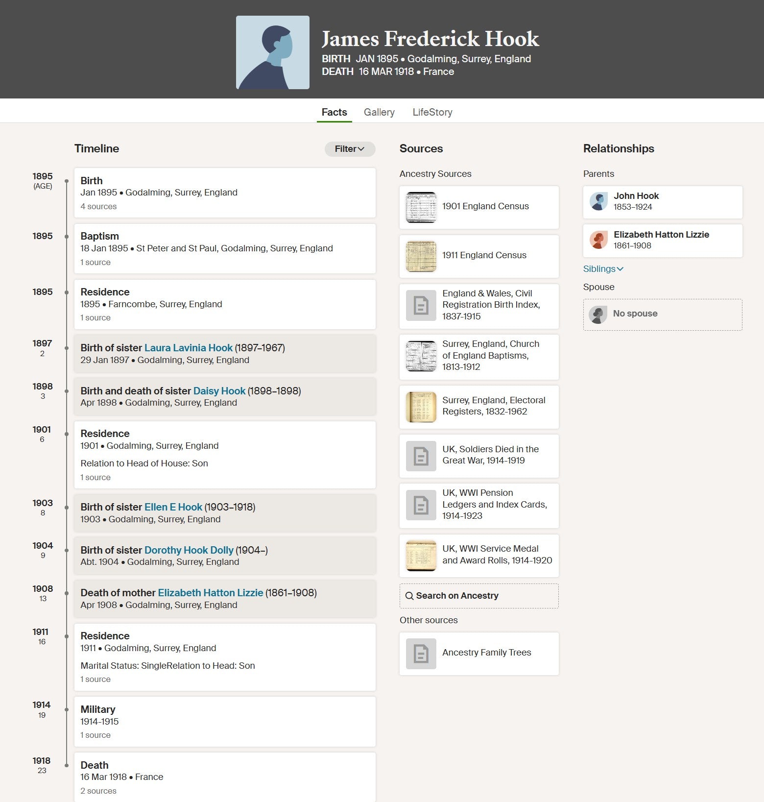Born 1895 Godalming, Surrey. Lived Farncombe, Surrey.