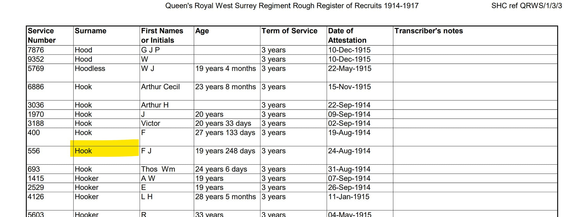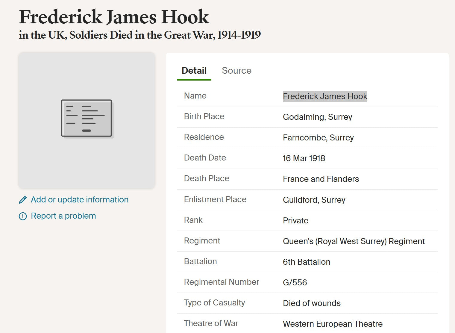Enlisted Guildford, Surrey - 24th August 1914 aged 19
