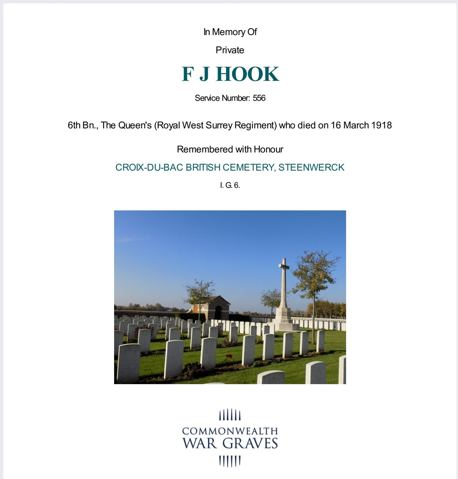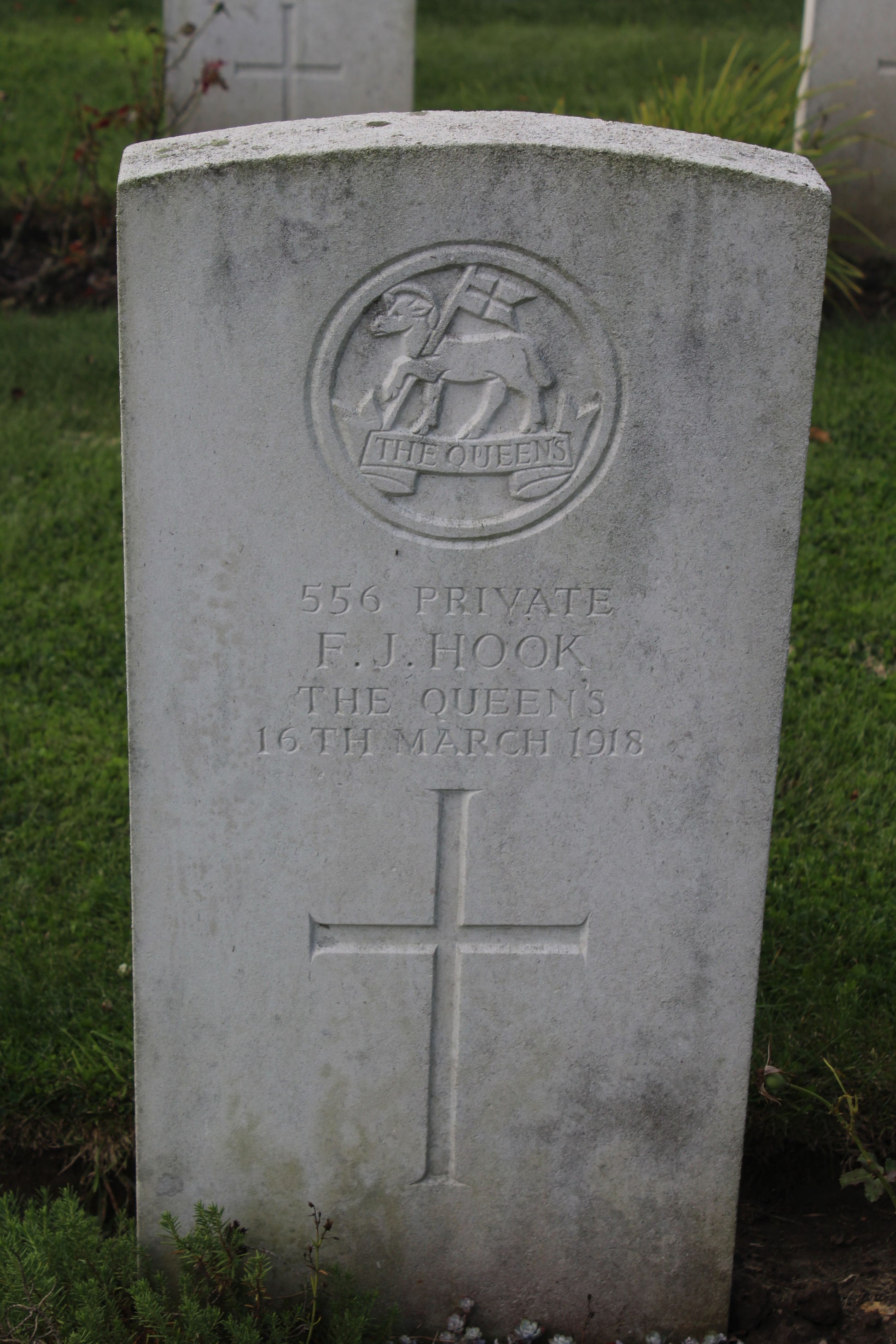 Victory Medal - G-556 PTE. F. J. HOOK. THE QUEEN'S R.
