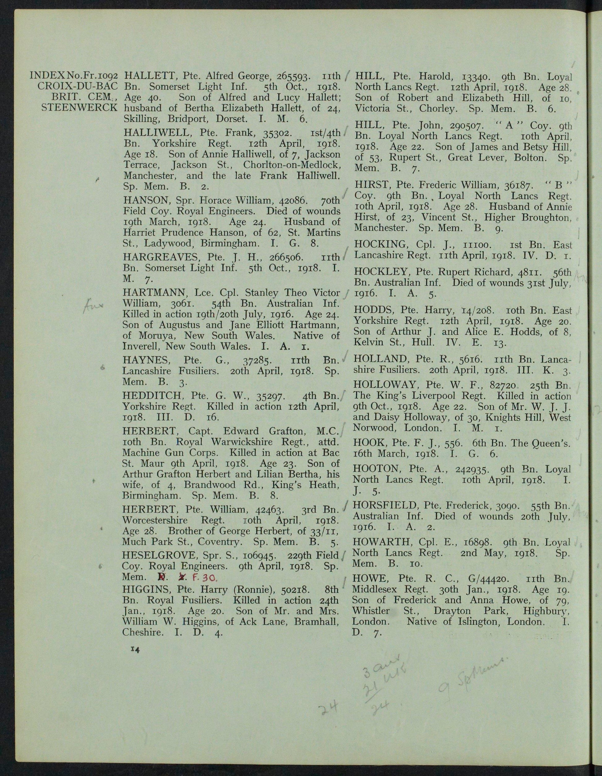 Buried Croix-Du-Bac British Cemetery, Steenwerck