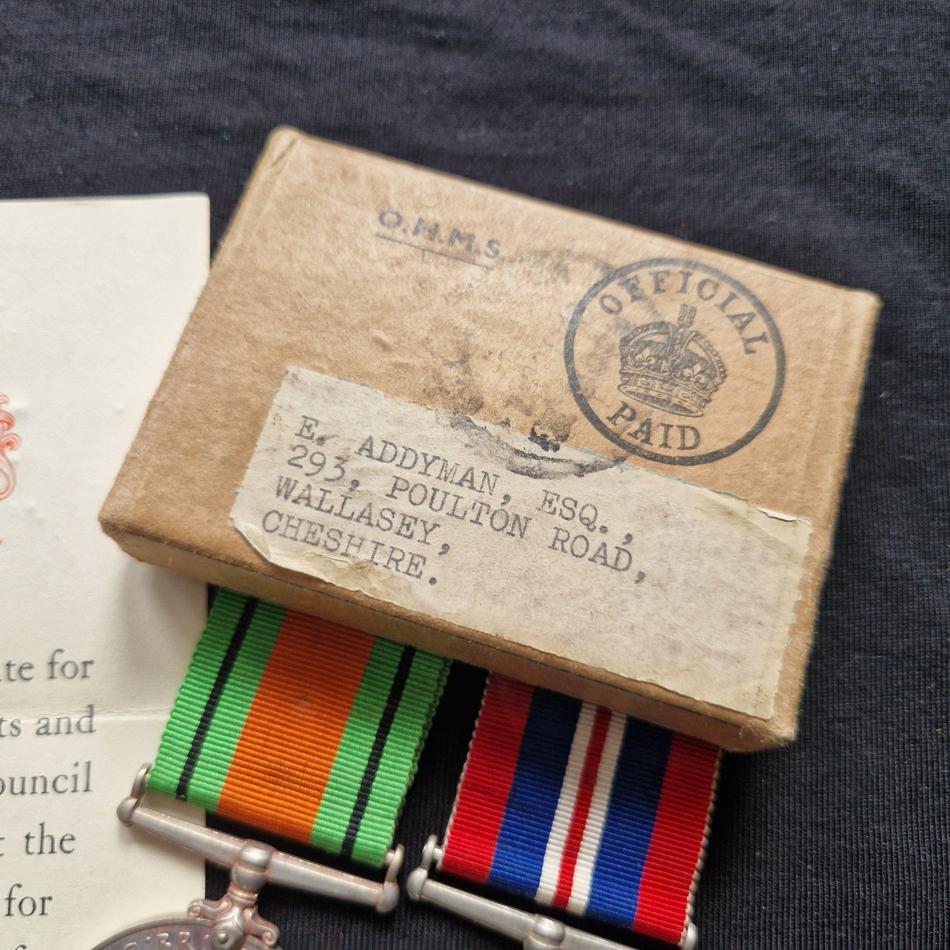 Defence and War Medals awarded to E. (Eric) Addyman of 293 Poulton Road, Wallasey, Cheshire