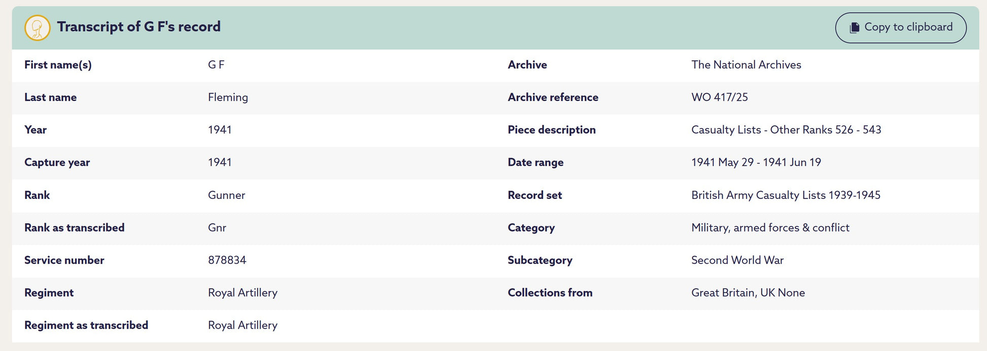 It was during this period that Fleming was wounded, reported in the War Office Casualty List No. 543, dated 19 June 1941. The incident is recorded as occurring “Home”, confirming wounds sustained while on UK operational duties with 99 HAA Regiment. These wounds likely the result of an air raid.