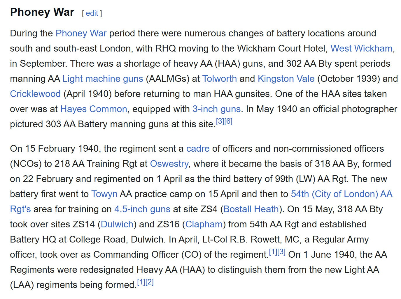 The 99th HAA Regiment had formed in April 1939 and was mobilised in August that year under Anti-Aircraft Command, initially defending London before later taking up key gun positions across south-east England. In the early war period – the “Phoney War” – 302 Battery rotated through sites around Mitcham, Streatham and Hayes Common, manning 3-inch AA guns, before receiving newer 4.5-inch HAA guns.