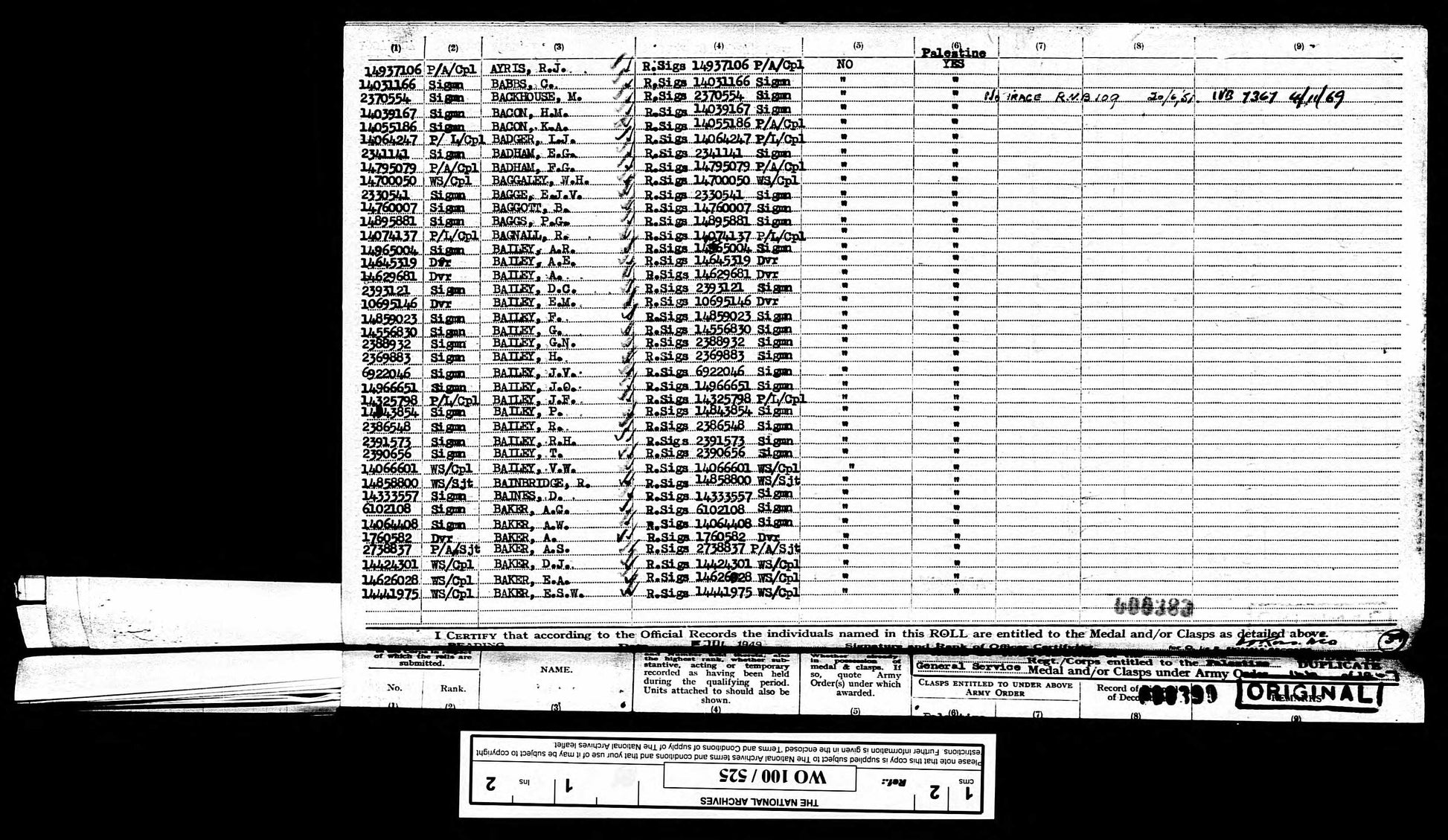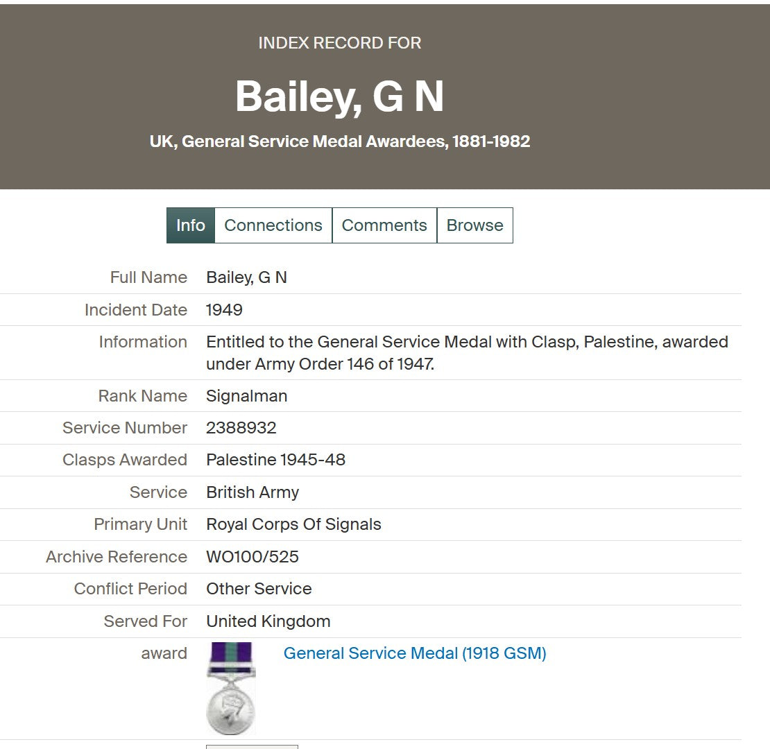 General Service Medal, 1 clasp, “Palestine 1945-48” – 2388932 SIGMN. G. N. BAILEY. R.SIGS.