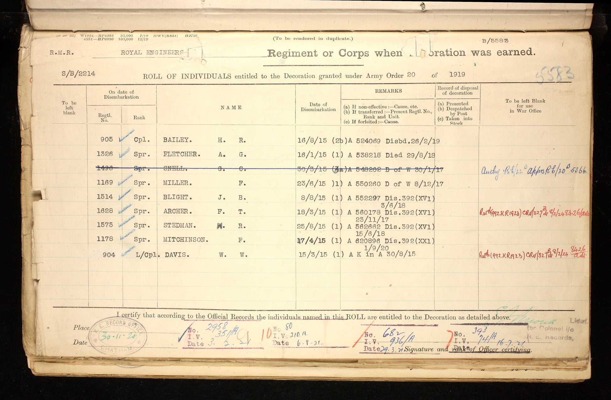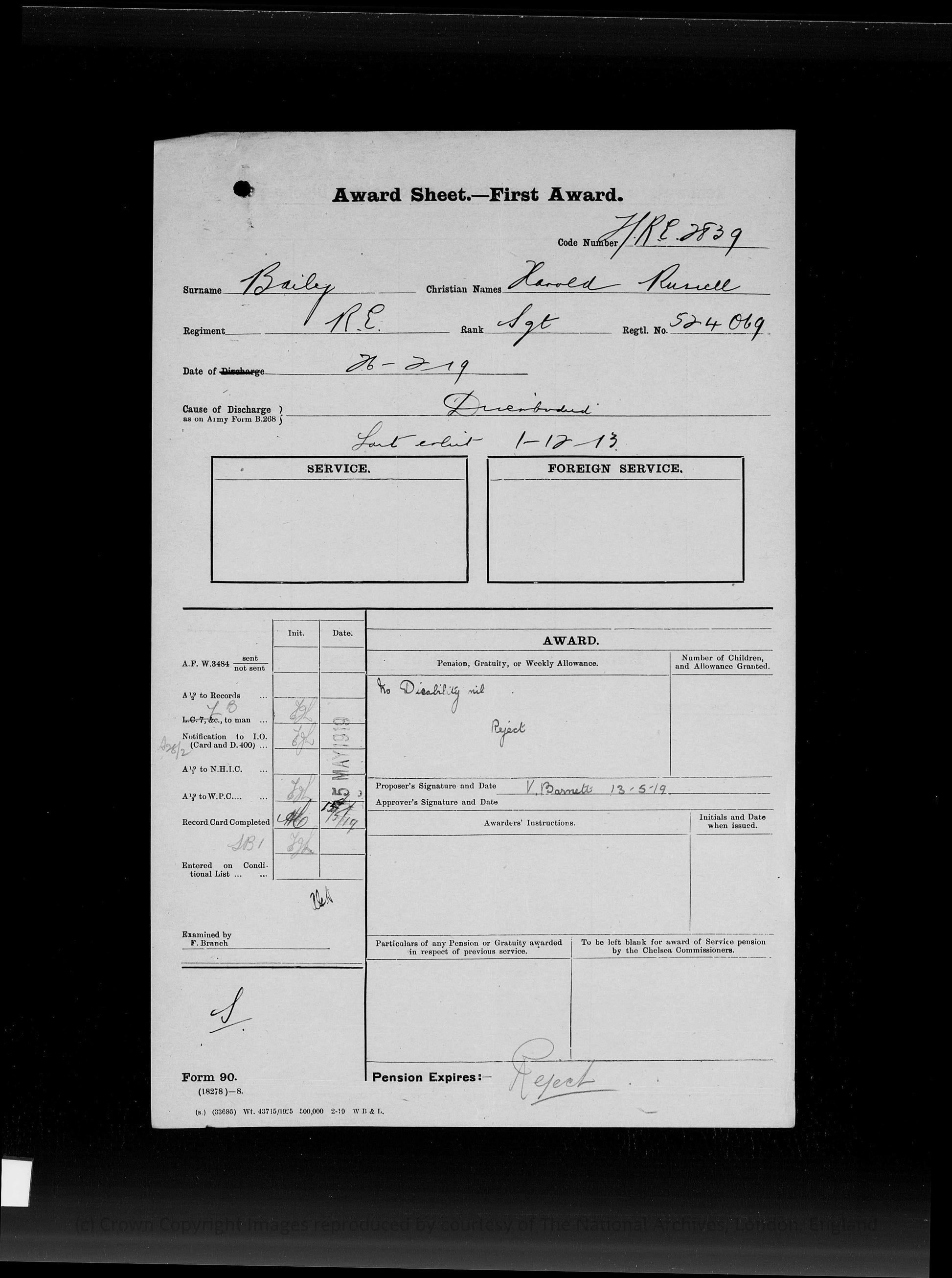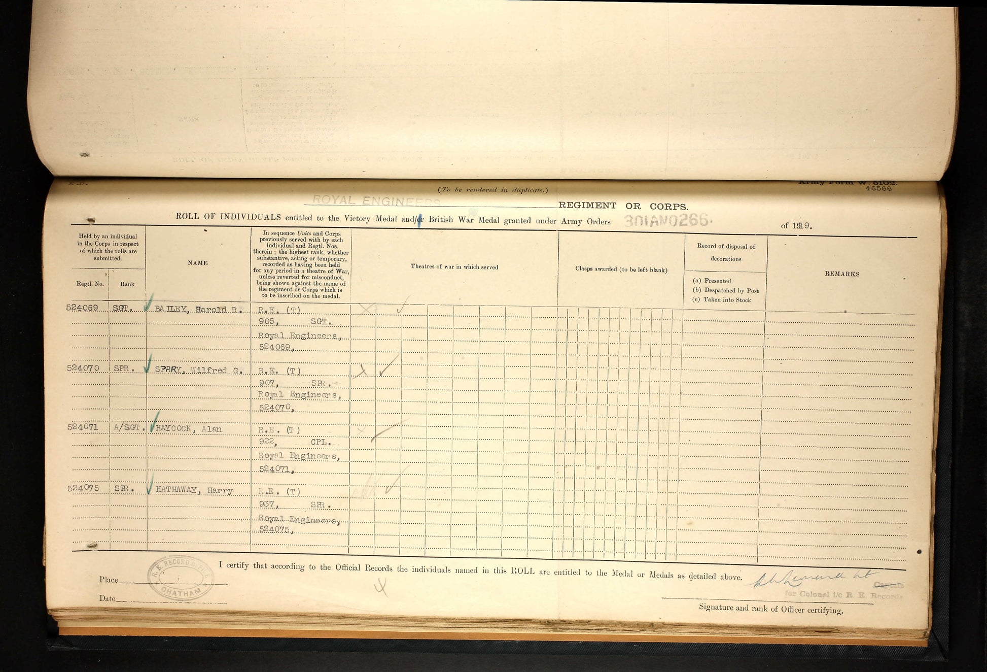 British War Medal – 905 SJT. H. R. BAILEY. R.E.