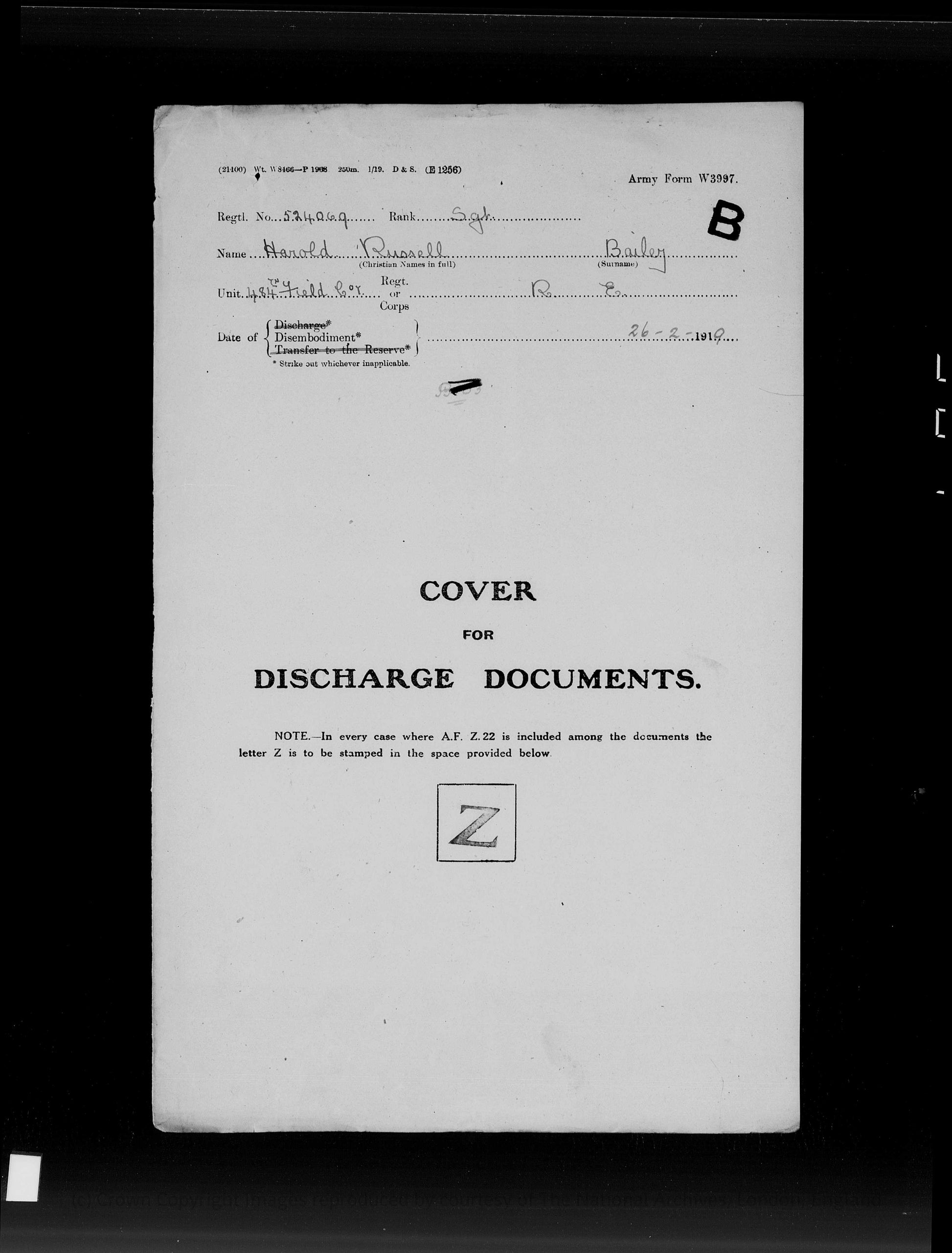 After the war, Bailey returned to civilian life and married Minnie N. Read (1890–1966) in April 1922 at Luton, Bedfordshire. The couple had a son, Gordon Newton Bailey, born on 21 November 1923. Harold Russell Bailey lived into the inter-war and Second World War period, witnessing his son follow him into military service.