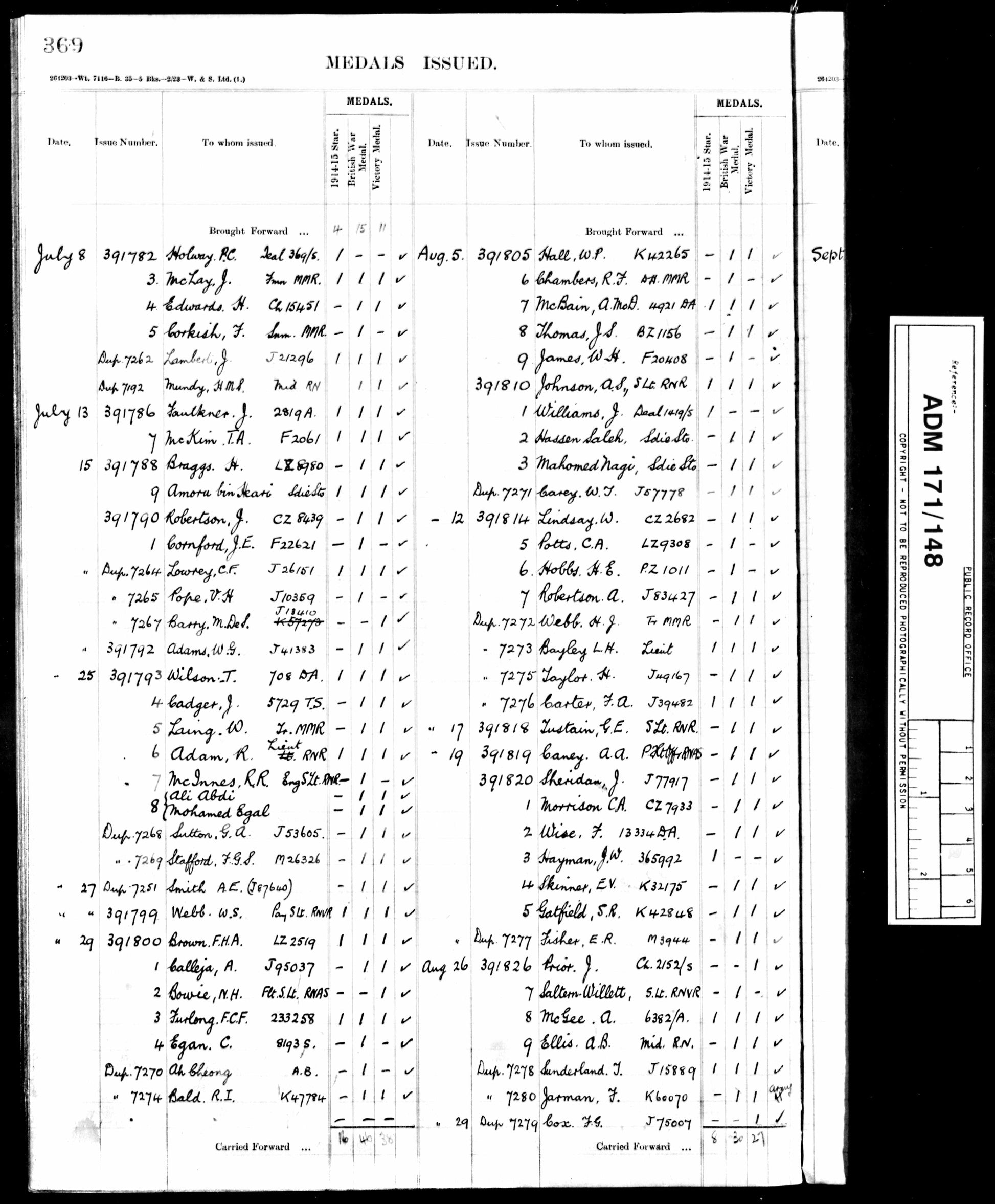 Victory Medal – J. 21296. J. LAMBERT. A.B. R.N.