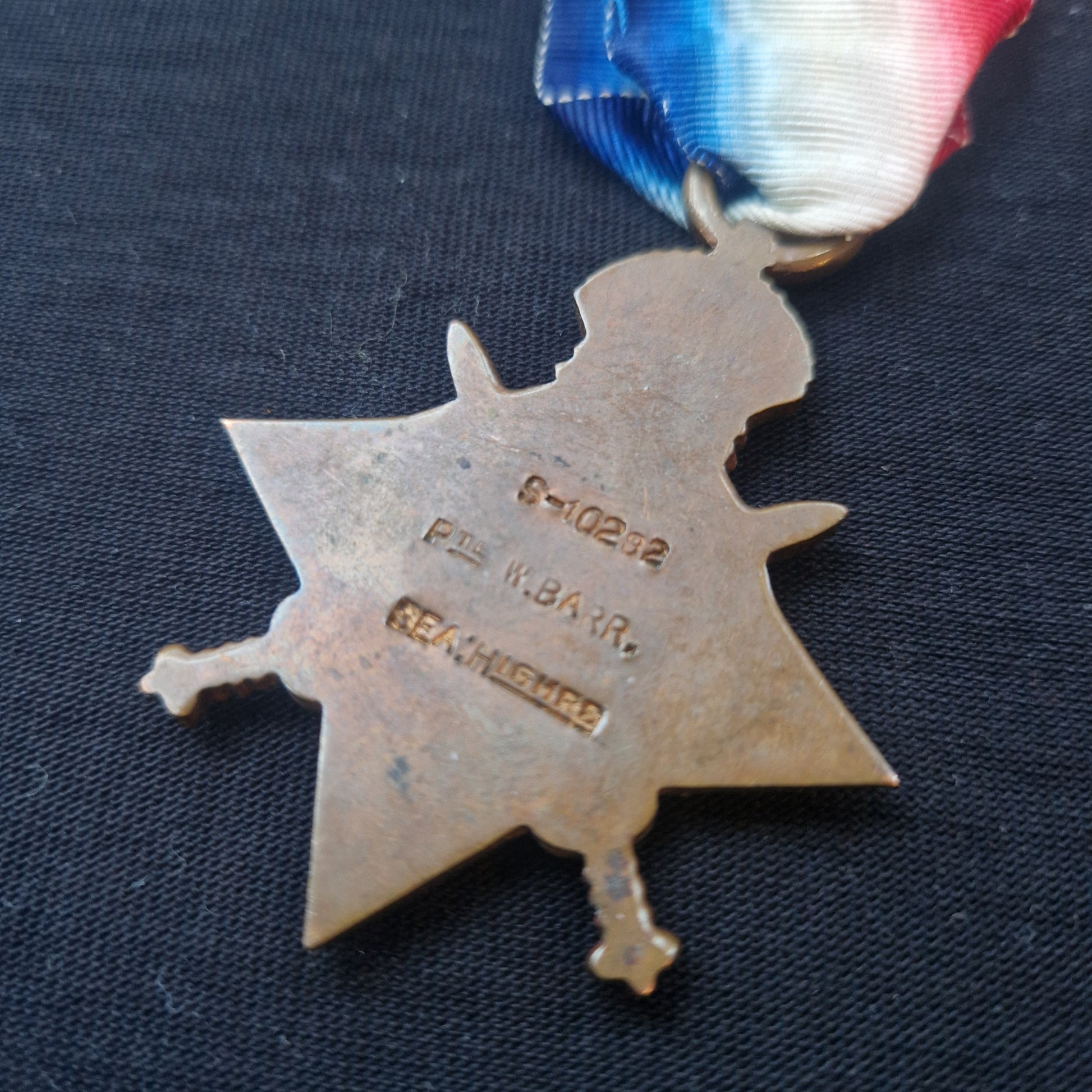 1914-15 Star - S-10292 PTE. W. BARR. SEA:HIGHRS