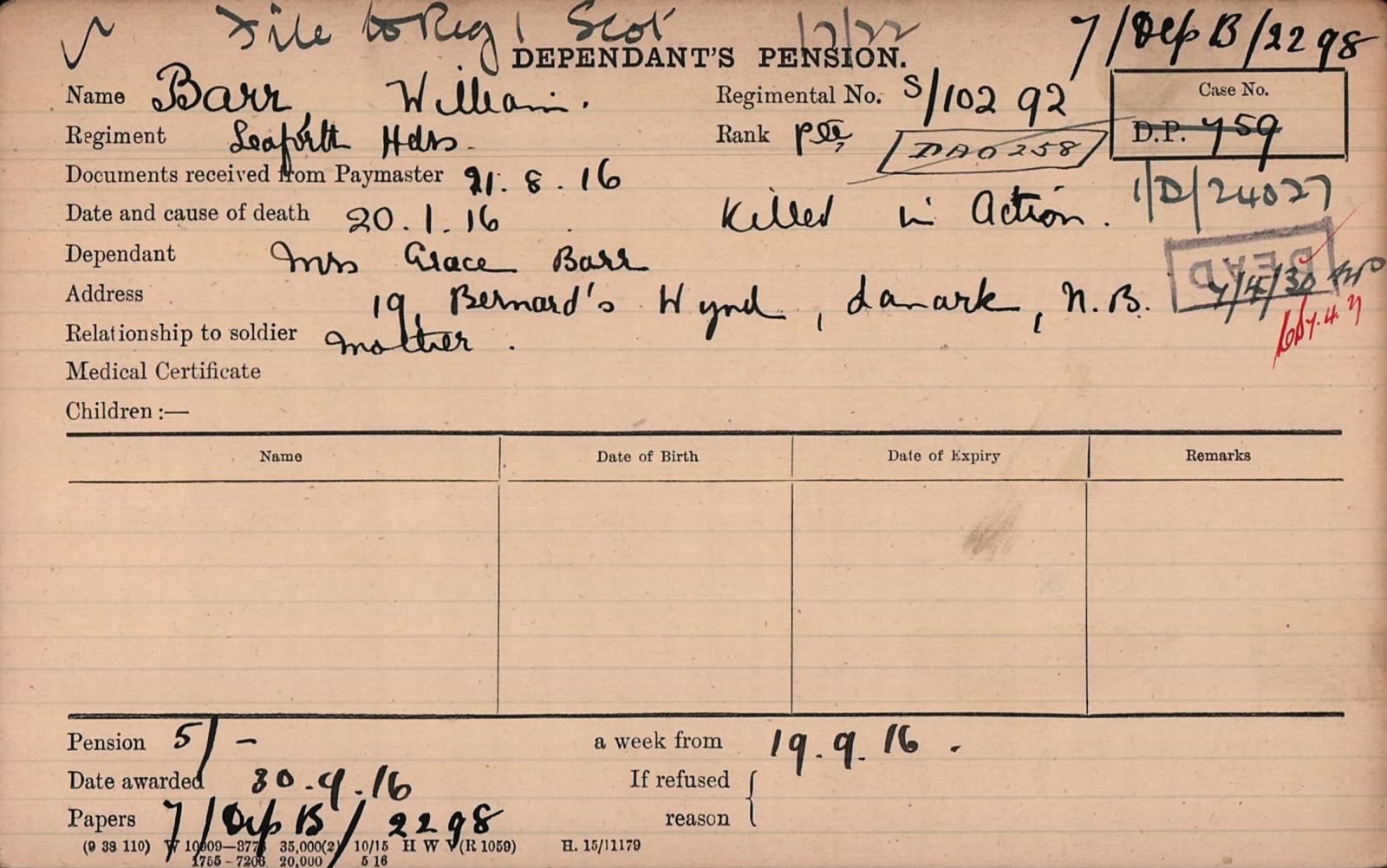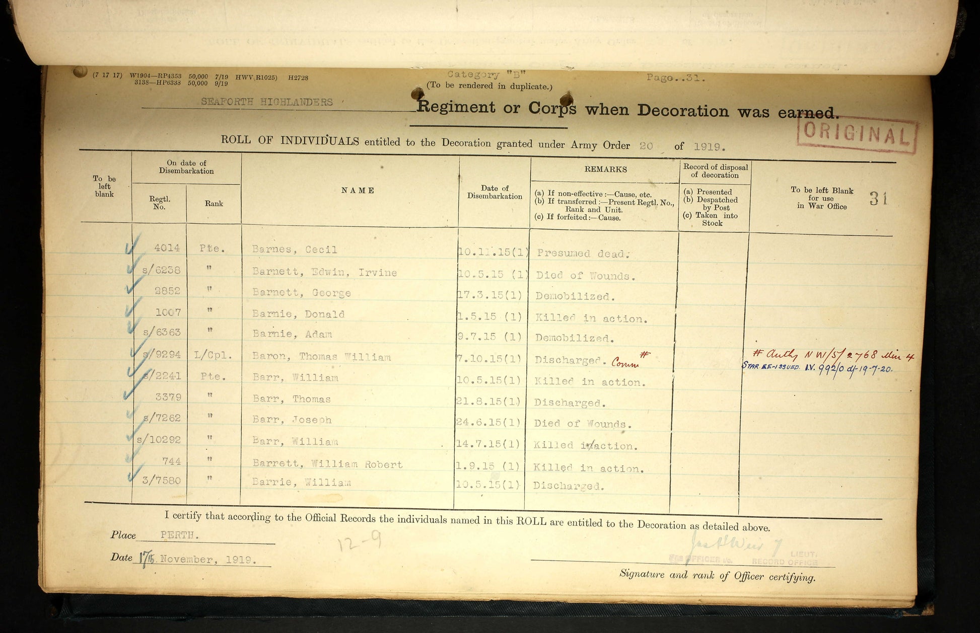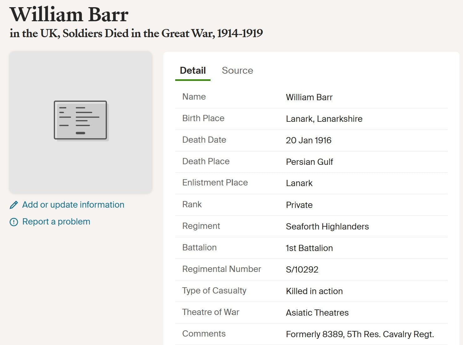 First World War 1914-15 Star - Private William Barr, 1st Bn Seaforth Highlanders, late Royal Scots Greys