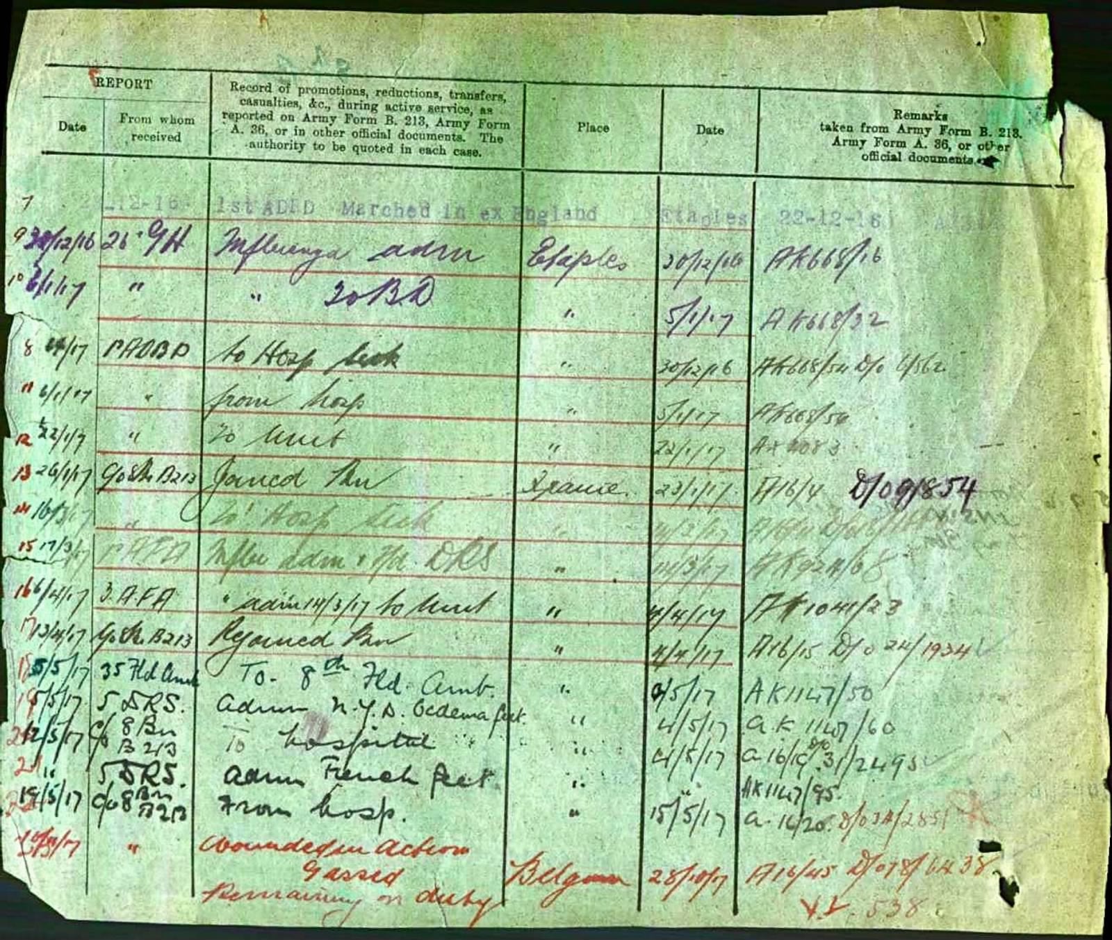 He recovered and continued to serve with the battalion through 1918, being transferred to the 1st Division Signal Company on 17 March 1918. His work as a signaller and despatch rider placed him in constant danger, particularly during the German spring offensive and the later Allied advances. The records show that he remained with his unit throughout the remainder of the war, serving with courage and reliability until the Armistice.