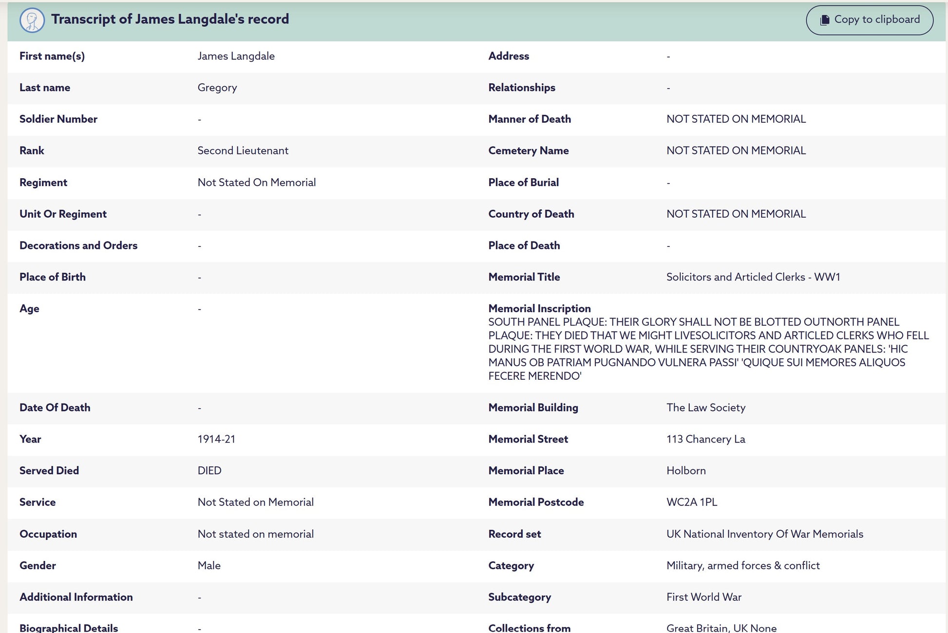 Victory Medal - 2. LIEUT. J. L. GREGORY.